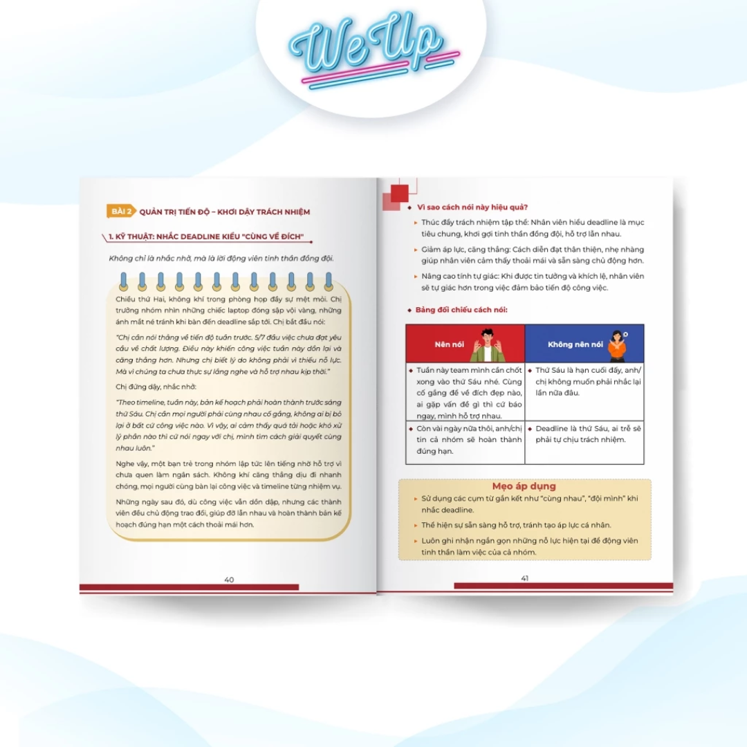 - Giúp người quản lý hiểu rõ cách diễn đạt nào tạo động lực, cách nào có thể khiến nhân viên phản cảm hoặc hiểu lầm. Mẹo ứng dụng thực tế:
