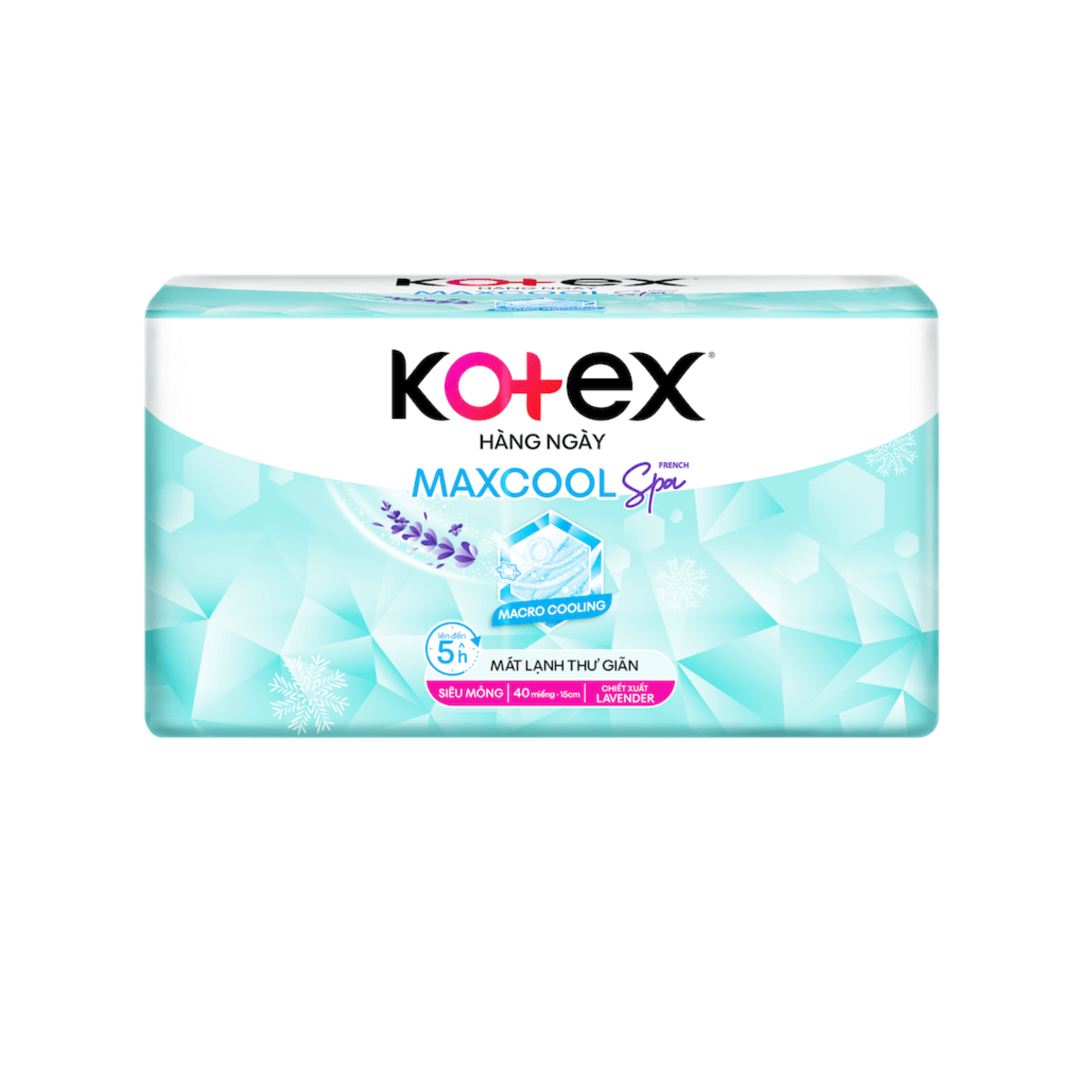 Ở giai đoạn tuổi dậy thì, ngoài vấn đề chu kỳ kinh nguyệt, bạn gái còn hay gặp tình trạng ra khí hư (hay còn gọi là huyết trắng) làm ẩm ướt quần lót, tạo điều kiện cho vi khuẩn và mùi hôi xuất hiện. Hơn nữa, vào ngày đèn đỏ, nhiều bạn gái còn gặp tình trạng hầm bí, khó chịu ở vùng nhạy cảm, ảnh hưởng đến tâm trạng cả ngày dài. Kotex Hàng Ngày Max Cool French Spa 40 miếng - Mát lạnh êm nhẹ hương Lavender Kotex được thành lập năm 1920, là thương hiệu thuộc công ty hàng tiêu dùng Kimberly-Clark có trụ sở tại Mỹ, chuyên cung cấp các sản phẩm chăm sóc sức khỏe kinh nguyệt phụ nữ. Hiện nay, Kotex cung cấp đa dạng các dòng băng vệ sinh ban ngày, băng vệ sinh ban đêm và băng vệ sinh hàng ngày. Một trong những dòng băng vệ sinh hàng ngày tiện dụng, hỗ trợ bảo vệ sức khỏe cho bạn gái không chỉ trong ngày đèn đỏ mà còn vào những ngày bình thường khác chính là dòng sản phẩm băng vệ sinh Kotex Hàng Ngày Max Cool French Spa 40 miếng. Với thiết kế nhỏ gọn, siêu mỏng kèm công nghệ Macro Cooling siêu mát lên đến 5h cùng hương Lavender tươi mát, Kotex Hàng Ngày Max Cool French Spa 40 miếng sẽ giúp vùng da nhạy cảm của bạn gái được khô thoáng, dịu mát, an toàn và sạch sẽ cả ngày dài. Ưu điểm của dòng sản phẩm Kotex Hàng Ngày Max Cool French Spa 40 miếng kháng khuẩn siêu bảo vệ Ưu điểm mới của dòng sản phẩm Kotex Hàng Ngày Max Cool French Spa 40 miếng có gì đặc biệt? So với dòng sản phẩm Kotex Max Cool bán chạy trước đó, phiên bản Kotex Hàng Ngày Max Cool French Spa sở hữu những đặc điểm nổi bật cực xịn sò như: