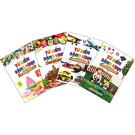 Bốn cuốn sách khổ lớn được thiết kế dưới dạng từ điển bằng hình (song ngữ Việt - Anh) được biên soạn theo các chủ đề: khám phá ngôi nhà của bé, chữ cái và số đếm, hoa quả và rau củ, Phương tiện giao thông là tổng hợp rất nhiều các ảnh chụp thật, rõ nét và ấn tượng về các con số và chữ cái, hoa quả rau củ, phương tiện giao thông phong phú… sẽ giúp bé làm quen với môi trường xung quanh và có những từ vựng đầu tiên làm nền tảng giao tiếp và tư duy phát triển.