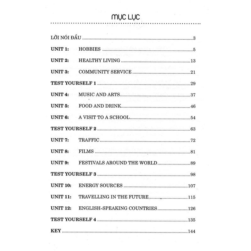 Sách bao gồm nhiều để kiểm tra với rất nhiều dạng khác nhau để các em luyện tập cách giải đề. Nội dung các đề kiểm tra bám sát các phần Ngữ âm, Từ vựng và Ngữ pháp, cũng như các chủ đề của mỗi bài học trong sách giáo khoa Tiếng Anh 7, hơn nữa còn được mở rộng thêm nên sẽ rất dễ dàng để các em vừa kiểm tra lại kiến thức đã học ở trường, vừa luyện tập và phát triển các kĩ năng phát âm, đọc, nói và viết.