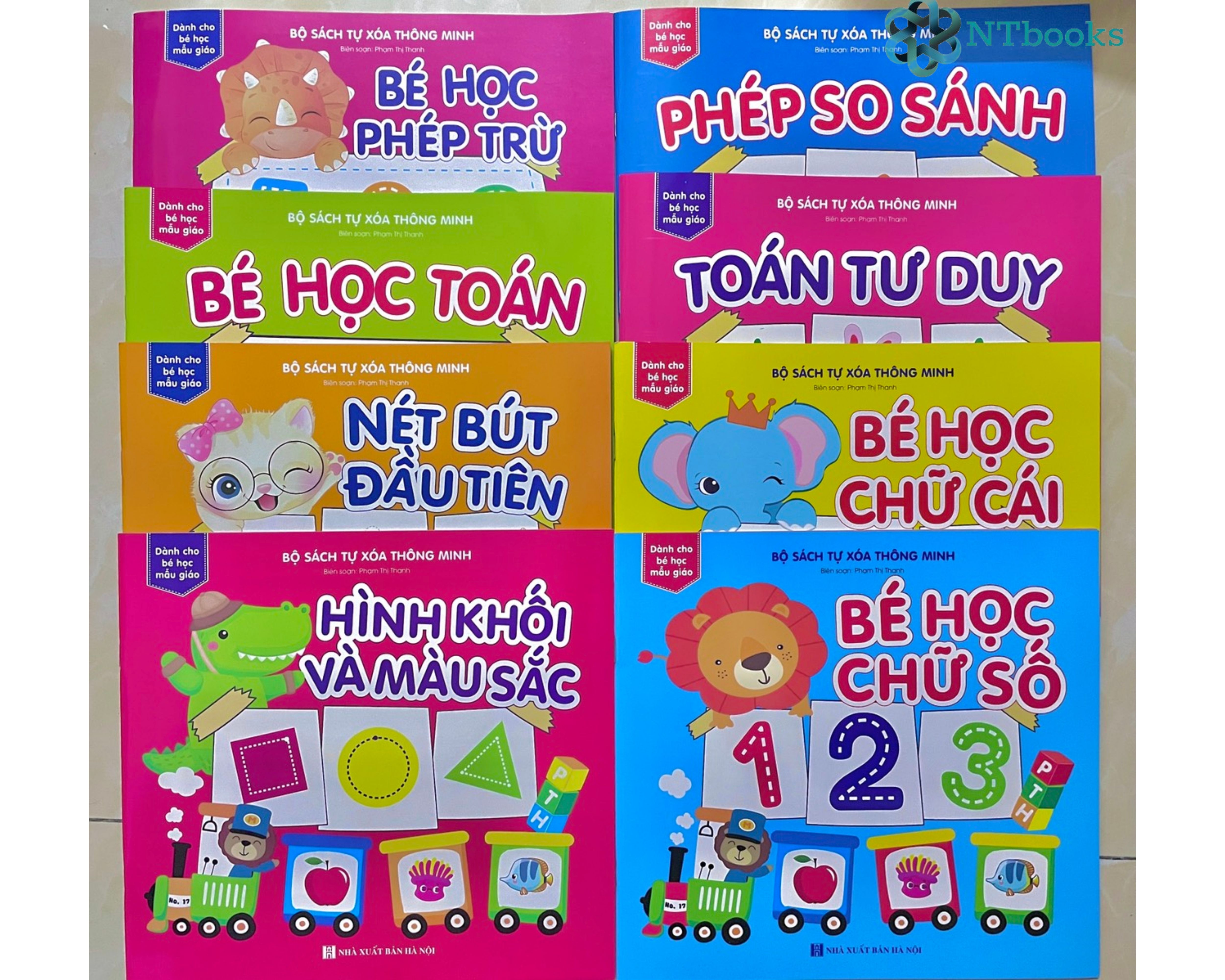 ✨Combo 4 cuốn Sách tự xóa: Bé học phép trừ - Phép so sánh - Bé học toán - Toán tư duy (tặng kèm bút) - NTbooks