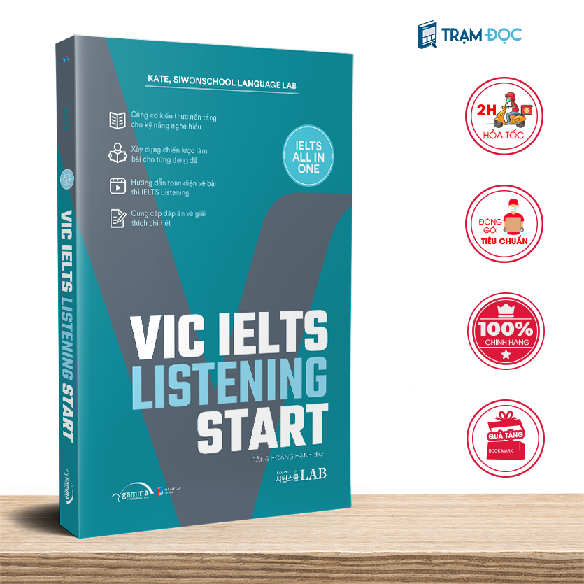 VIC IELTS Listening Start là cuốn sách giúp thí sinh tự ôn luyện và nâng cao kỹ năng nghe cho bài thi IELTS Listening. Sách hướng dẫn người học nâng cao kỹ năng nghe bằng phương pháp nghe chép chính tả (Díctation) và nói nhại (Shadowing). Sách được chia làm 4 phần và cung cấp 20 Unit từ cơ bản đến nâng cao, đi kèm là các chiến lược và giải thích cho từng bài, giúp người mới bắt đầu học IELTS làm quen và tiếp cận dễ dàng hơn với bài thi nghe IELTS Listening. Với những hướng dẫn cụ thể và rõ ràng ở phần giới thiệu sách, người học sẽ không cảm thấy bỡ ngỡ với bài thi và sẽ tự tin hơn trên con đường chinh phục bài thi IELTS Listening.