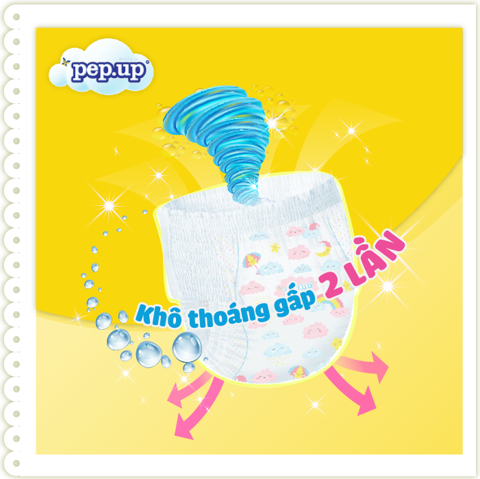 Combo 4 Gói Tã/Bỉm Quần Em Bé Pep.up Extra Dry Siêu Mềm Mại, Siêu Khô Thoáng, Kháng Khuẩn Size L (9 Miếng/Gói)
