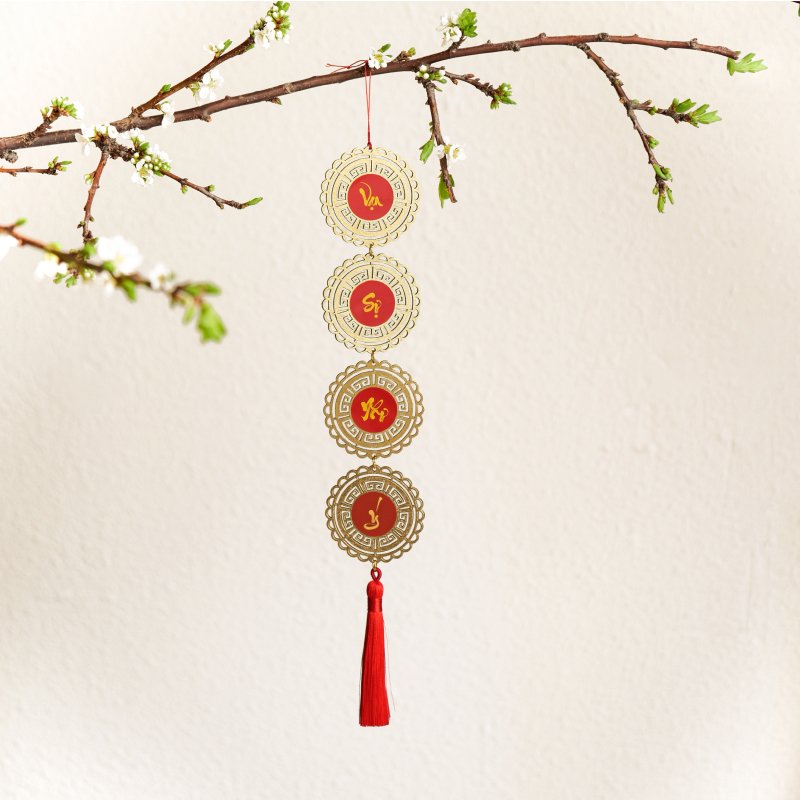 BỘ 4 DÂY LIỄNG TRANG TRÍ TẾT  Thấy hoa mai, hoa đào là thấy Tết. Cây hoa Tết nhà bạn năm nay sẽ đặc biệt hơn khi được trang trí bằng bộ dây treo Khai Lộc Hoàng Kim. Thiết kế độc đáo, gỗ khắc hoa văn được làm thủ công, tinh tế và đẹp mắt. Chỉ có tại Mia home