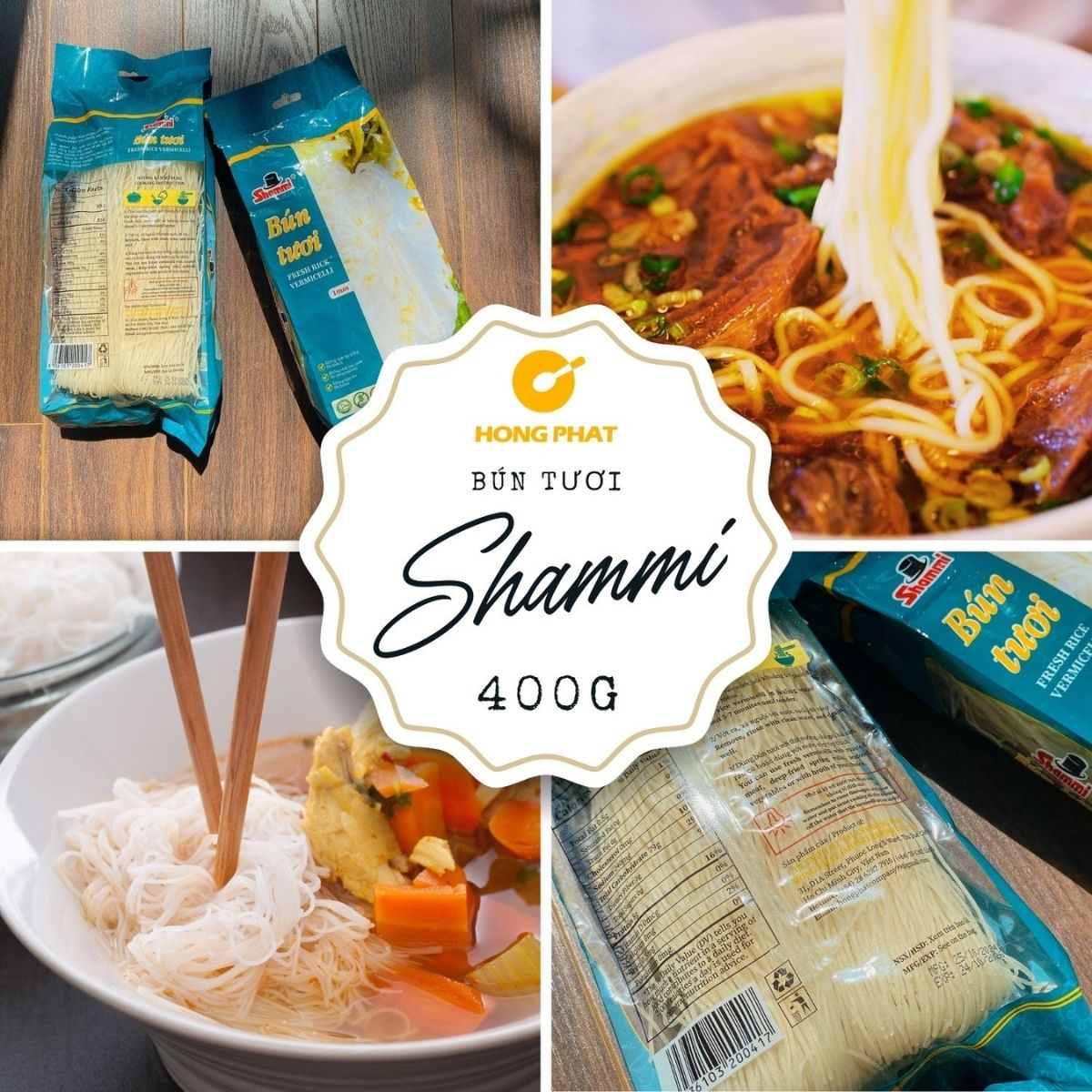 Mua tại TiktokSợi bún vừa, tròn, màu trắng được làm từ bột gạo nguyên chất chất lượng, đảm bảo an toàn. Bún tươi Shammi gói 400g giúp bạn bảo quản được lâu. Bún Tươi có thể dùng để chế biến đa dạng các món ăn như xào hoặc nấu với nước lèo tùy thích một cách đơn giản. Hồng Phát Foods cam kết sản phẩm 4 KHÔNG: