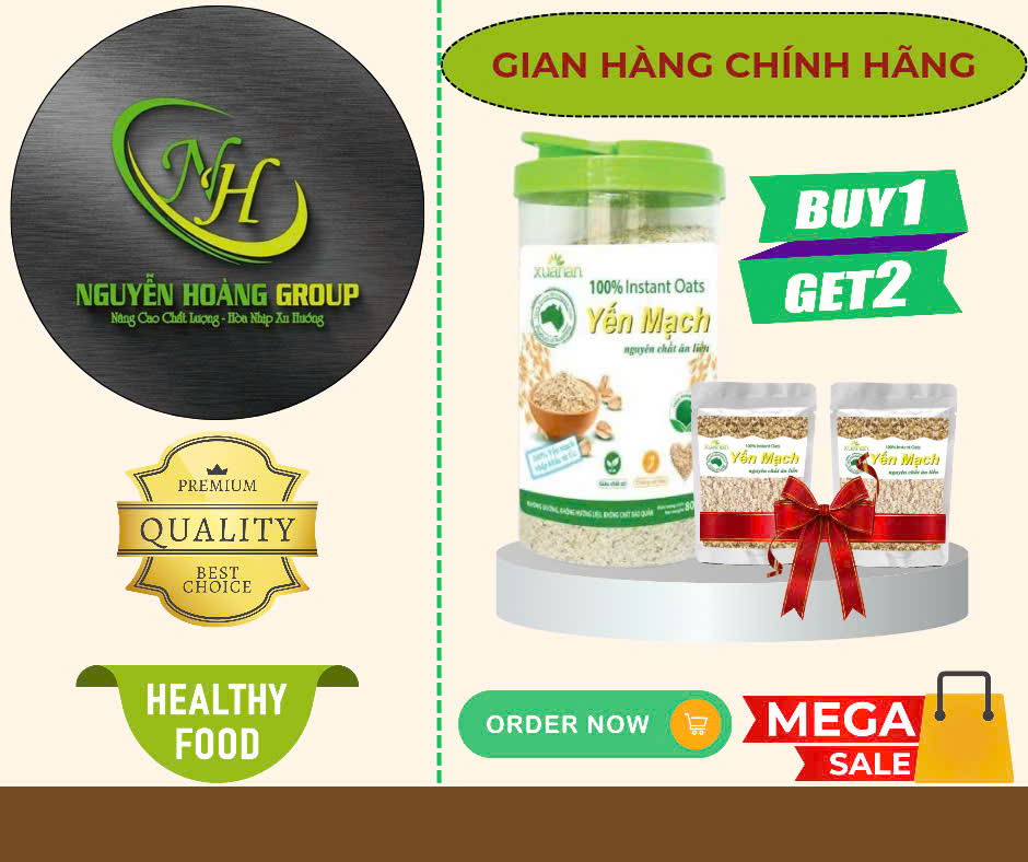 GIỚI THIỆU Yến mạch ăn kiêng GUfoods là loại ngũ cốc với hàm lượng chất xơ và giá trị dinh dưỡng vượt trội, bổ sung lý tưởng cho thực đơn ăn kiêng thường ngày. Sản phẩm đặc biệt phù hợp với người tập gym, tập thể thao, eat clean, hỗ trợ giảm cân và giàu lợi ích sức khoẻ. ĐẶC ĐIỂM NỔI BẬT ✓ Giàu chất xơ và dinh dưỡng tốt, nhiều lợi ích sức khoẻ từ yến mạch ✓ Đặc biệt phù hợp cho người tập gym - thể thao, ăn kiêng, thực dưỡng, eat clean ✓ Nguyên liệu sạch, nhập khẩu Úc ✓ Không phụ gia, không chất bảo quản THÀNH PHẦN 100% Yến mạch nguyên hạt cán mỏng. GIÁ TRỊ DINH DƯỠNG Yến mạch cung cấp nhiều chất xơ, protein, vitamin, các hợp chất chống oxy hoá và các khoáng chất có lợi cho sức khỏe. LỢI ÍCH SỨC KHỎE 1. Hỗ trợ quá trình ăn kiêng - Chất xơ trong yến mạch giúp tiêu hóa lâu hơn và duy trì cảm giác no trong một khoảng thời gian dài, hạn chế cảm giác thèm ăn. 2) Tốt cho bệnh nhân tiểu đường type 2 - Bệnh tiểu đường type 2 được đặc trưng bởi sự điều chỉnh bất thường của lượng đường trong máu, thường là do giảm độ nhạy hormone insulin. Beta glucan trong yến mạch có tác dụng giúp kiểm soát lượng đường trong máu bằng cách điều chỉnh đáp ứng glucose và insulin sau bữa ăn 3) Tốt cho hệ tiêu hoá - Lượng chất xơ dồi dào có trong yến mạch giúp điều chỉnh chức năng ruột, giảm các triệu chứng táo bón và viêm đại tràng. 4) Tốt cho tim mạch - Các nghiên cứu đã chứng minh rằng yến mạch có thể làm giảm mức cholesterol, qua đó giúp hỗ trợ tích cực cho sức khoẻ tim mạch. HƯỚNG DẪN SỬ DỤNG Làm chín và ăn kèm sữa chua / sữa tươi; nấu thành cháo / súp; hoặc dùng làm nguyên liệu chế biến granola, ngũ cốc, các loại bánh. HƯỚNG DẪN BẢO QUẢN Bảo quản nơi khô mát, tránh ánh nắng trực tiếp. KHỐI LƯỢNG TỊNH
