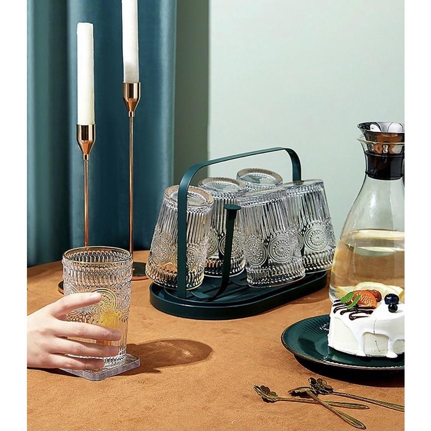 Combo Bộ 6 cốc thủy tinh cao cấp kèm giá úp tròn có khay hứng Combo gồm: 1 bình 6 cốc cốc 1 giá úp hươu 1 khay vương miện