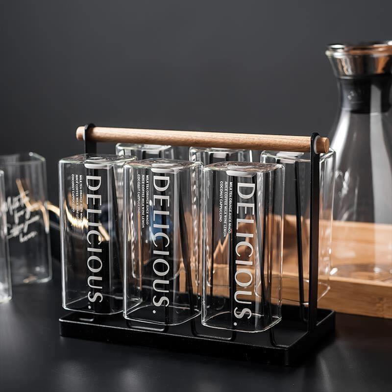 Chất liệu: thủy tinh Bộ sản phẩm gồm: 1 bình nước + 6 cốc + giá úp cốc Độ bền cao, chịu nhiệt tốt, hạn chế nứt vỡ do tác động của nhiệt. Chất liệu