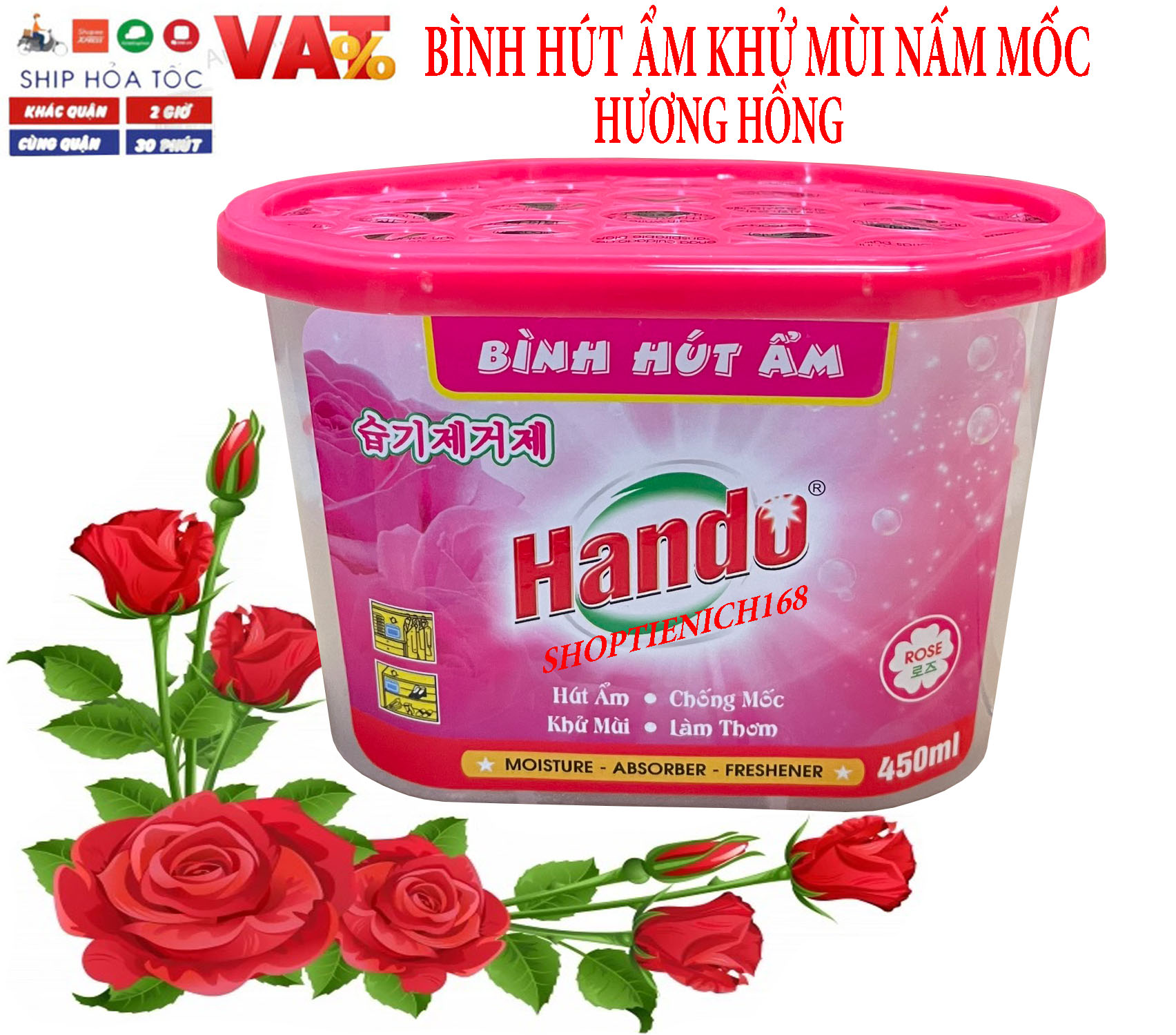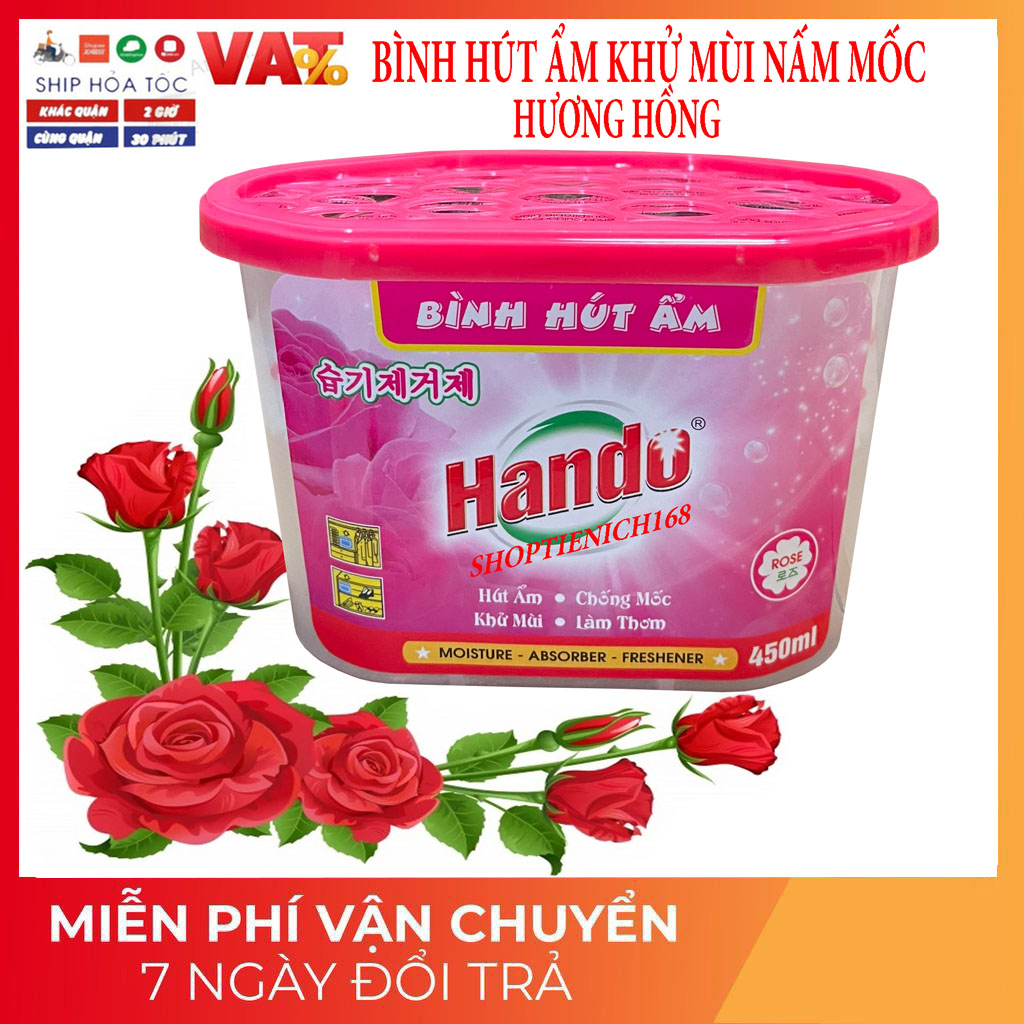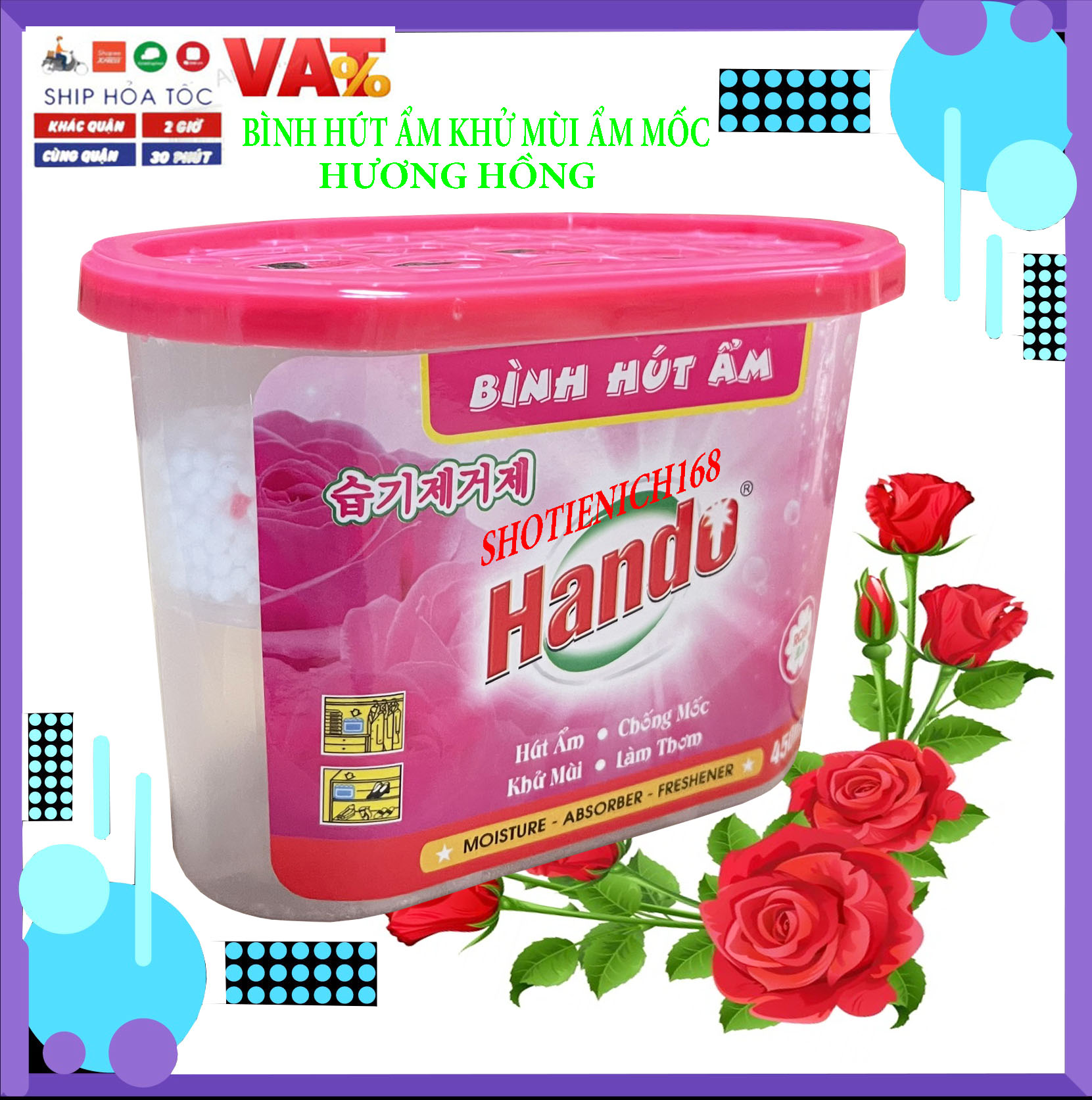 • Bình hút ẩm Hando 200g được sản xuất trên dây chuyền hiện đại. Công thức cải tiến giúp sản phẩm hút ẩm, chống nấm mốc hiệu quả.- Sản phẩm có khả năng khử nhanh mùi chua mốc và các mùi khó chịu khác, trả lại cho bạn không gian thoáng mát.- Bình hút ẩm Hando 200g có hương thơm hoa hồng dịu nhẹ, hỗ trợ việc khử mùi tốt hơn.- Sản phẩm thiết thực và hữu ích với mọi nhà, phù hợp với thời tiết nóng ẩm Việt Nam.