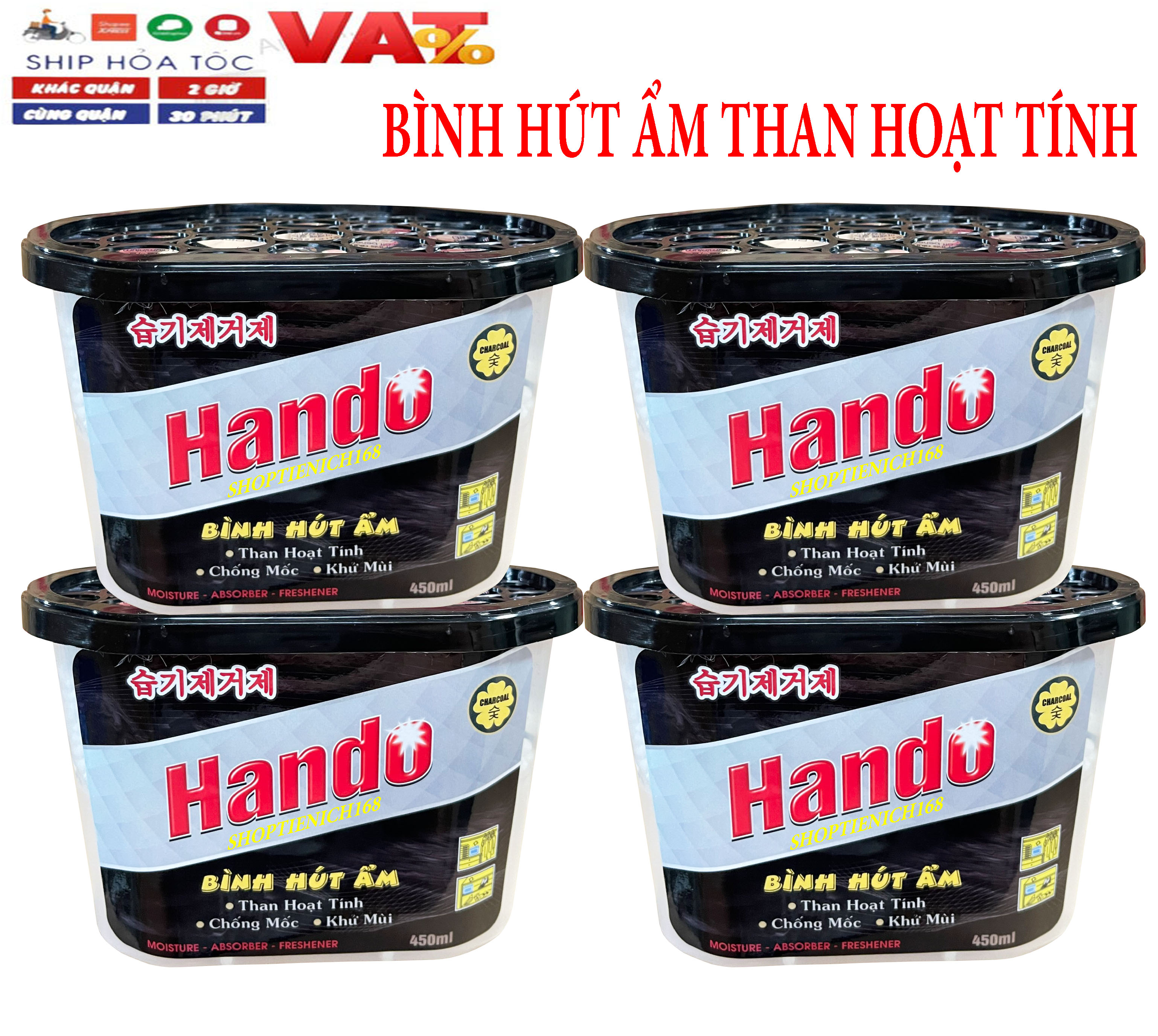 Thông số sản phẩmTên sản phẩm : Bình hút ẩm Hando 450mlHướng dẫn sử dụng    : Mở nắp, lột bỏ lớp giấy bạc, giữ lớp giấy thấm và để nơi mình muốn. Không làm rách lớp giấy thấm, thay bình khác khi mực nước xấp xỉ nửa bình.Hướng dẫn bảo quản : Bảo quản nơi khô ráo, thoáng mát, tránh xa tầm với của trẻ em và không ăn đượcThành phần : Calcium super, fragance pelleet, chất chống ẩm mốc, khử mùi…Công dụng : Hút ẩm, chống mốc, giữ đồ vật khô ráo và khử mùi chua mốc hiệu quảDung tích : 450 (ml)Xuất xứ : Việt Nam