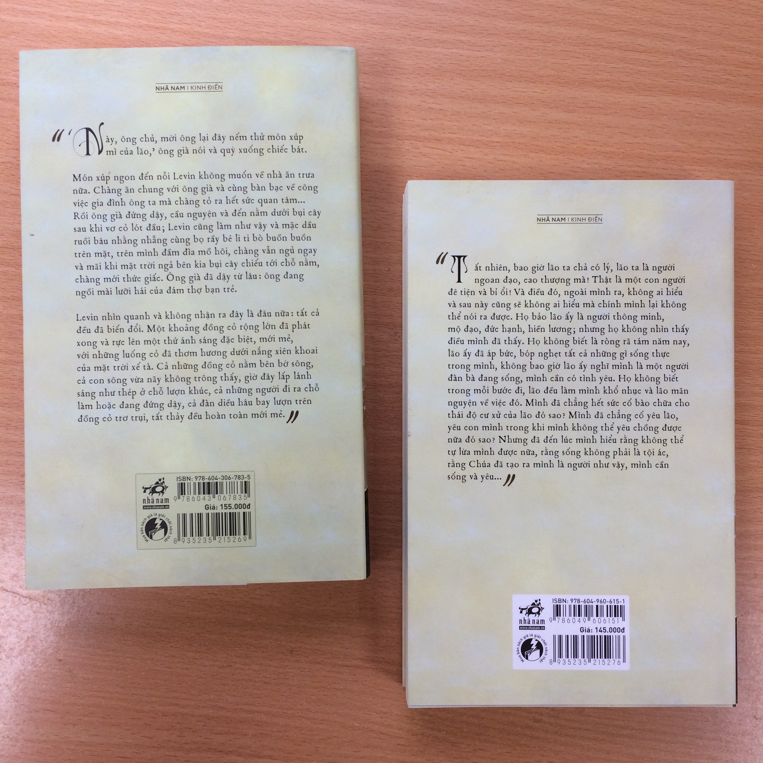 Levin nhìn quanh và không nhận ra đây là đâu nữa: tất cả đều đã biến đổi. Một khoảng đồng cỏ rộng lớn đã phát xong và rực lên một thứ ánh sáng đặc biệt, mới mẻ, với những luống cỏ đã thơm hương dưới nắng xiên khoai của mặt trời xế tà. Cả những đồng cỏ nằm bên bờ sông, cả con sông vừa nãy không trông thấy, giờ đây lấp lánh sáng như thép ở chỗ lượn khúc, cả những người đi ra chỗ làm hoặc đang đứng dậy, cả đàn diều hâu bay lượn trên đồng cỏ trơ trụi, tất thảy đều hoàn toàn mới mẻ.”