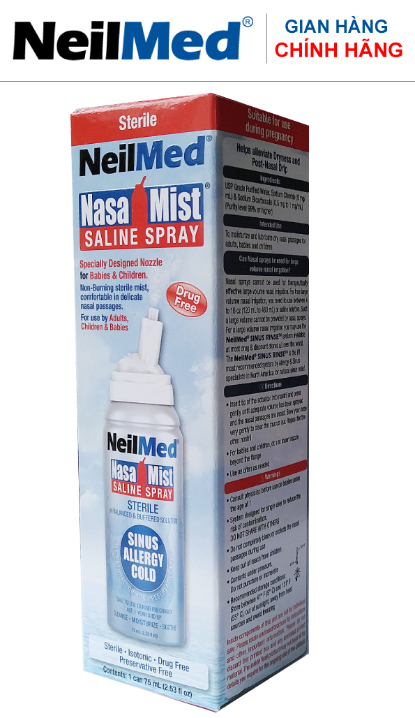 Nước muối sinh lý đệm rửa mũi với bình NeilMed là một cách vệ sinh tuyệt vời có thể cuốn trôi hết các dị nguyên, nấm bốc, bụi bẩn, vi khuẩn, chất nhầy , các chất gây dị ứng, chất kích thích, vi khuẩn và virut ra khỏi xoang mũi và làm giảm tần suất mắc các bệnh lý về mũi xoang.