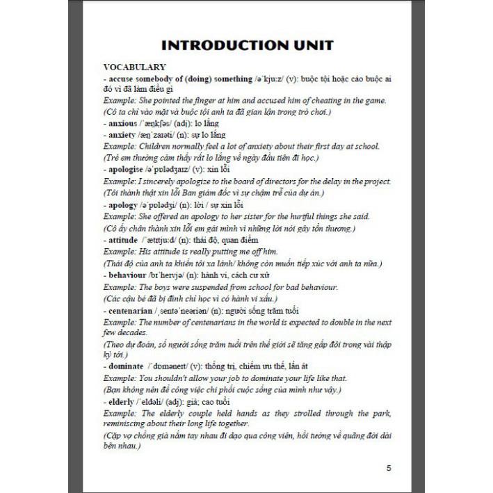 Trong cuốn sách này, chúng tôi biên soạn các phần từ vựng và chủ điểm ngữ pháp bám sát theo sách giáo khoa, với cách trình bày bài giảng và bài tập mỗi đơn vị bài học như sau: Vocabula