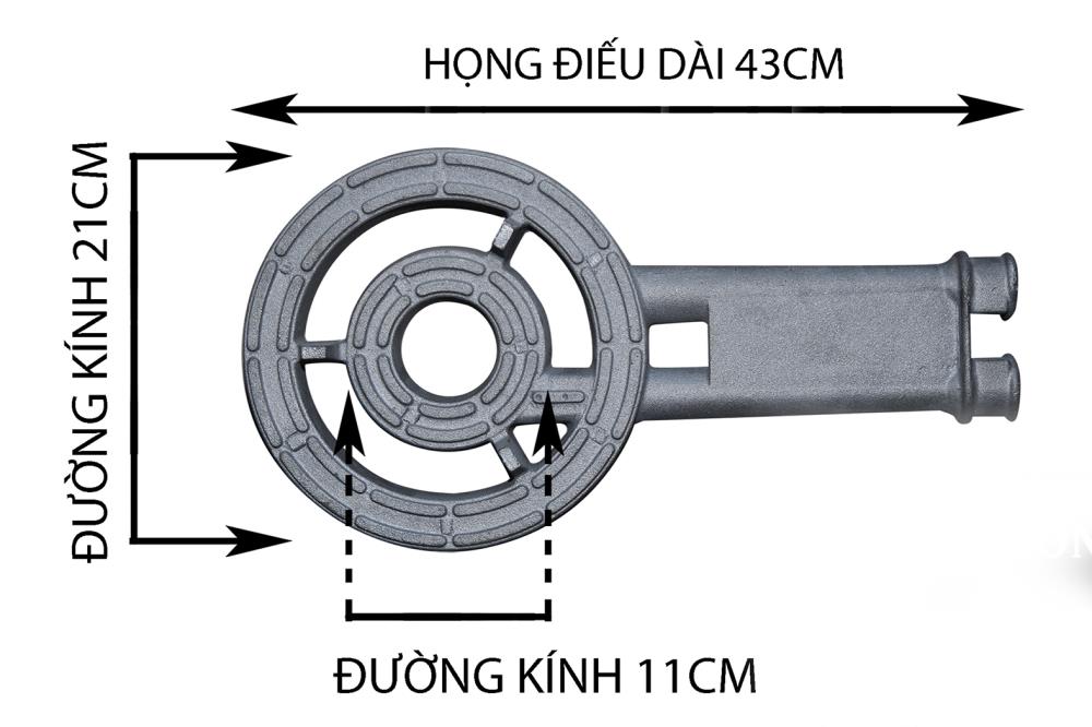 Đường kính Tô 33.1cm, Họng 22/11cm, tổng cao 12cm, Họng dài 43cm, tổng bếp dài 48.5cm