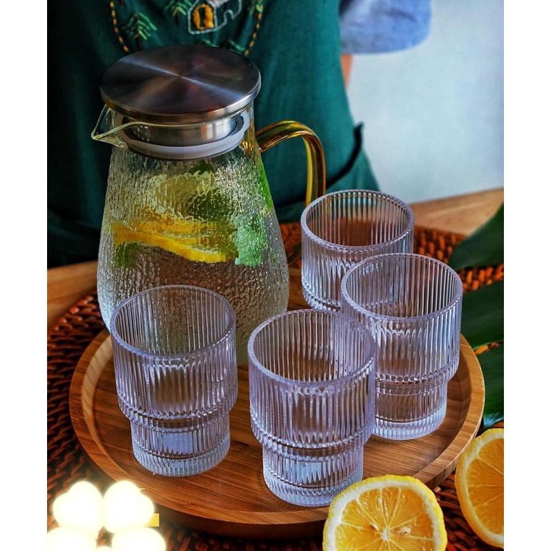 SET BÌNH CỐC THỦY TINH KÈM KHAY DECOR | BỘ BÌNH CỐC THỦY TINH KÈM KHAY SANG CHẢNH DECOR PHONG CÁCH RETRO Phong cách Retro thường có cảm giác như một tác phẩm nghệ thuật