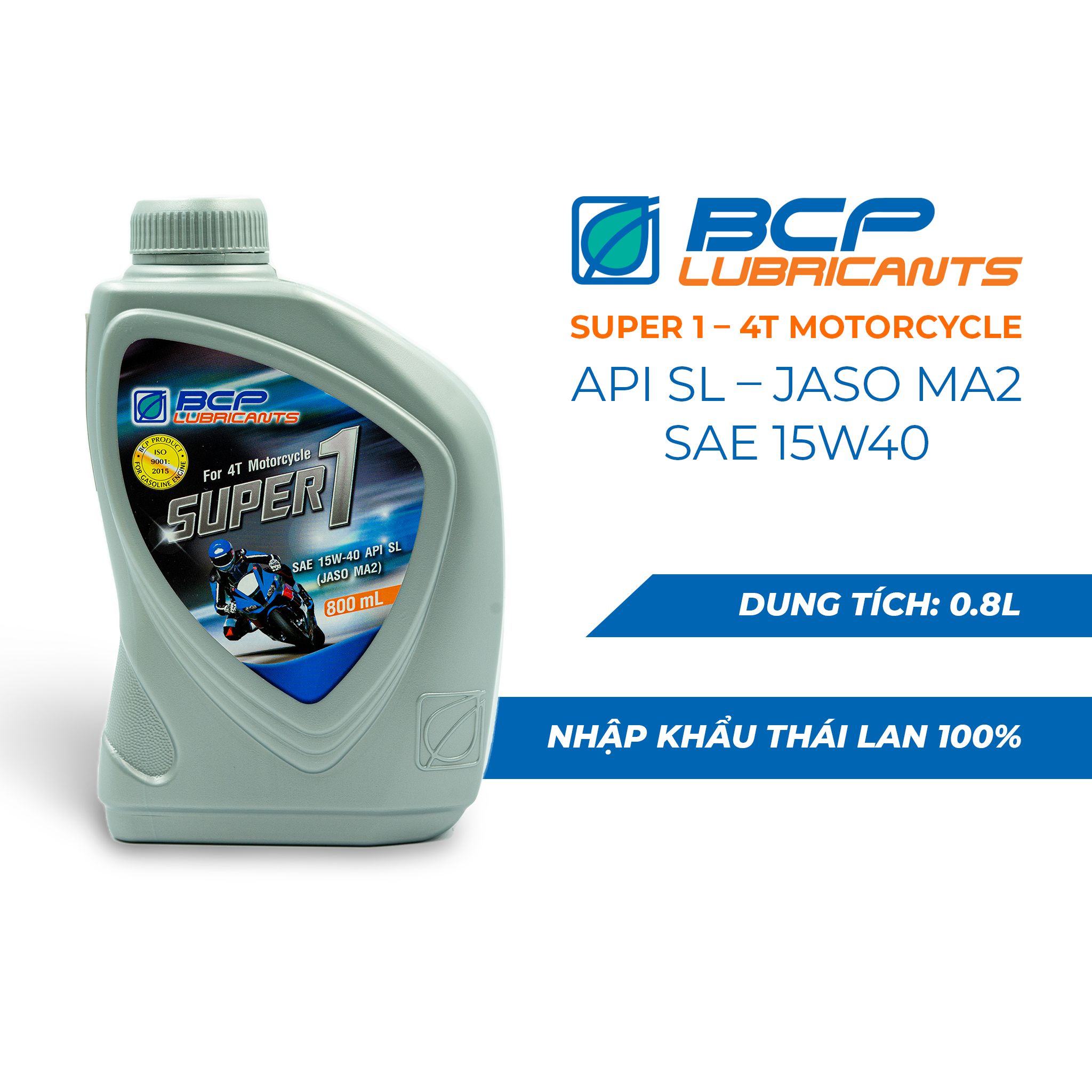 Sonaimex | Nhớt xe số BCP Super 1 SAE 15W40, API SL, Chai 800mL (Nhập khẩu Thái Lan)