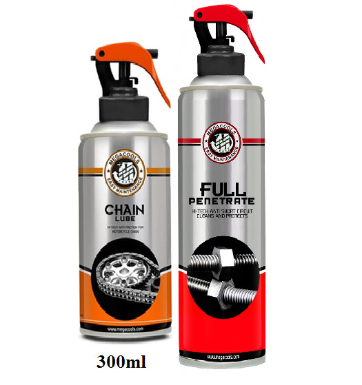 Combo dưỡng sên Megacools Chain Lube 300ml + vệ sinh sên 300ml Penetrate bảo dưỡng sên Combo Megacools Chailube và Megacools Full Penetrate GỒM: - 1 CHAI XỊT SÊN 300ML - 1