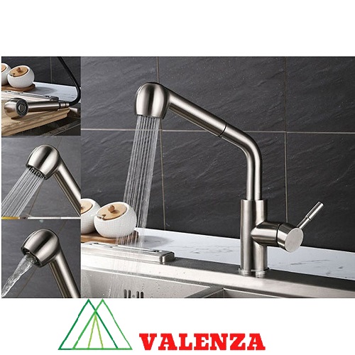 Vòi rửa bát nóng lạnh inox sus304 rút dây 02 có thể xoay 360 độ rất tiện lợi, dễ dàng xoay từ bồn rửa bên này sang bên kia với đĩa xoay siêu bền.
