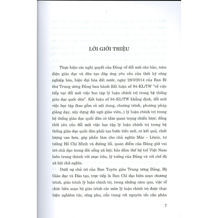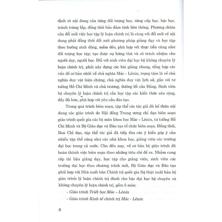 Bộ giáo trình lý luận chính trị gồm 5 cuốn dành cho bậc đại học hệ không chuyên lý luận chính trị. Bộ sách là tài liệu giảng dạy, học tập cho giảng viên, sinh