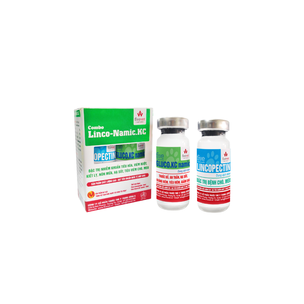 Pha 1ml Five-Lincopectin với 1ml Five-Gluco.KC namic/con/ngày.