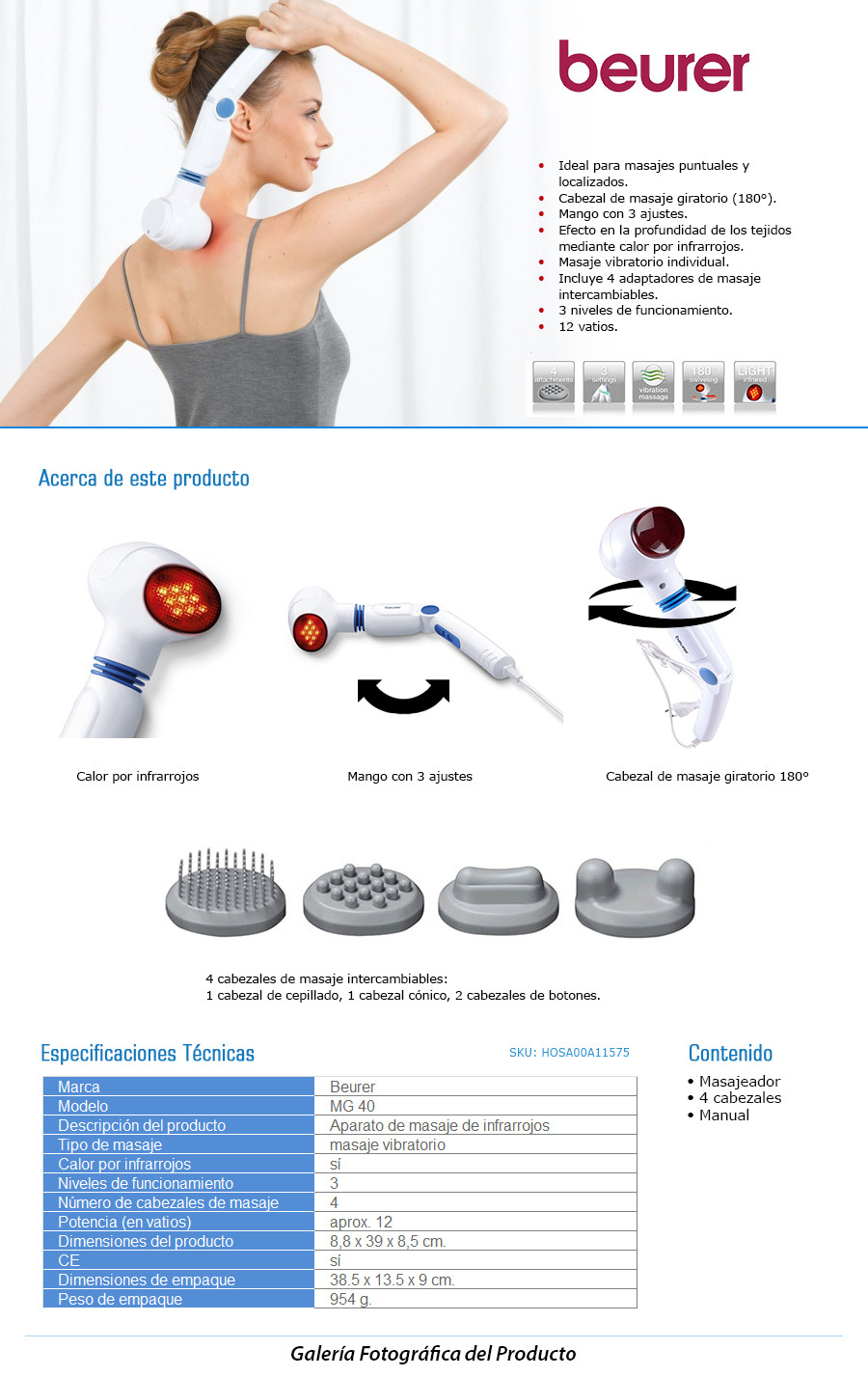 Máy Massage Cầm Tay Có Đèn Hồng Ngoại Beurer MG40 Máy Massage Cầm Tay Có Đèn Hồng Ngoại Beurer MG40 được thiết kế thông minh: Thiết bị có những tính năng xoa, bóp, rung, hồng ngoại