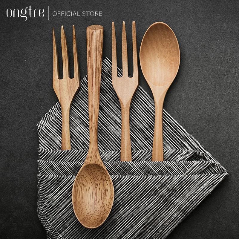 ✨Combo Muỗng Nĩa gỗ sồi kèm túi vải ONGTRE / Du lịch, quà tặng, Decor, văn phòng
