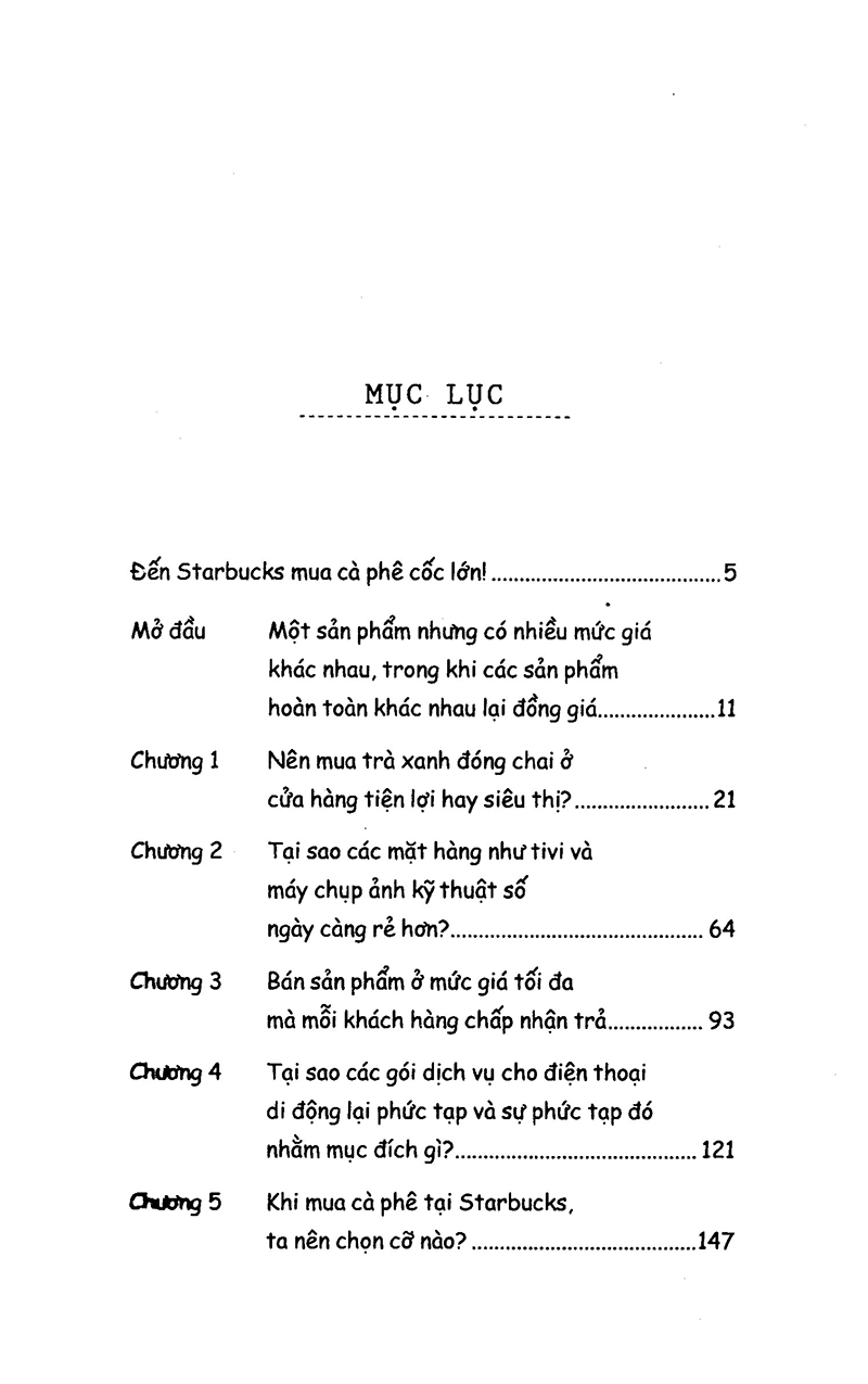 Đây là chương tổng quan mà tác giả đề cập khái quát nhất về những thắc mắc có thể các bạn thường bỏ qua khi đi mua sắm. Chẳng hạn như tại sao cùng một chai nước lọc mà bán ở siêu thị thì giá 5000đ, trong khi mua ở tiệm tạp hoá là 6000 và mua ở khách sạn, nhà nghỉ bình dân…ờm, giá rẻ nhất cũng 10.000đ.