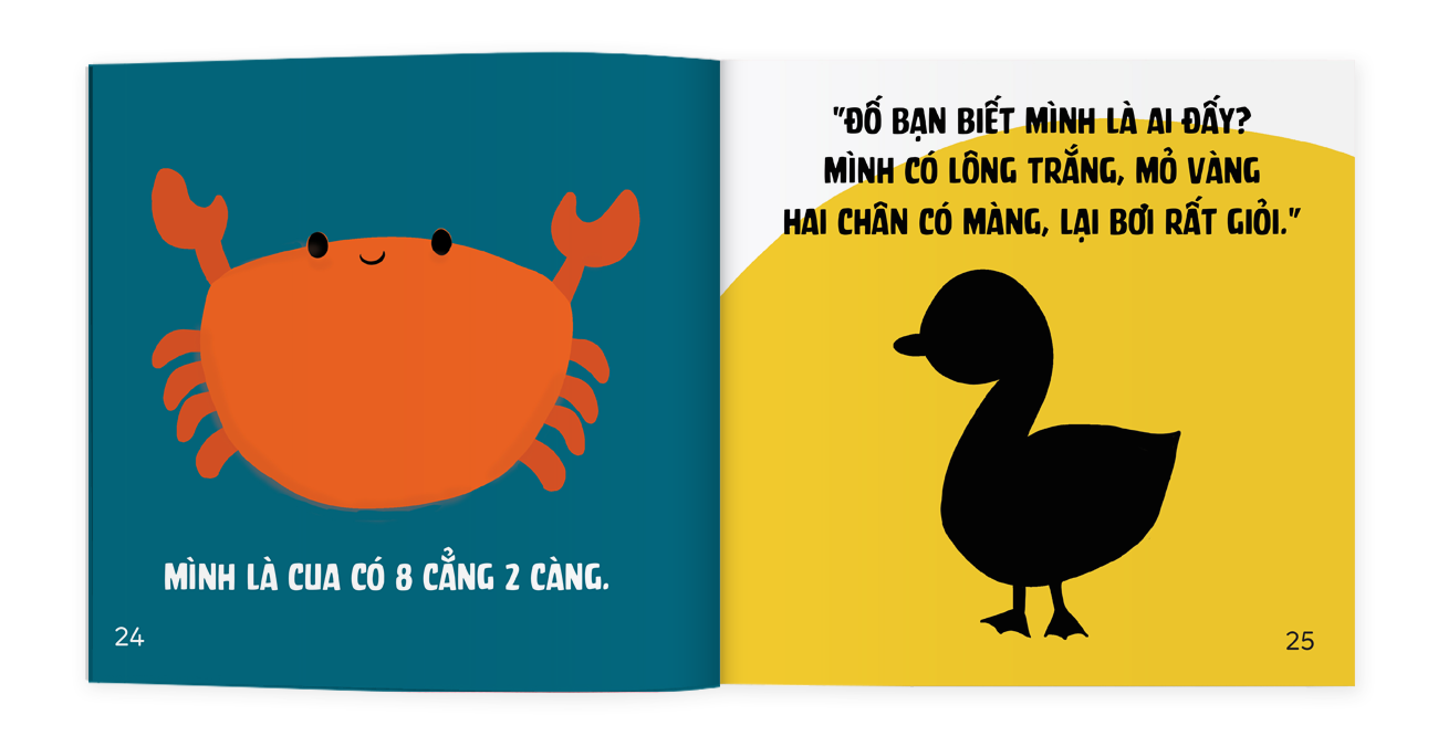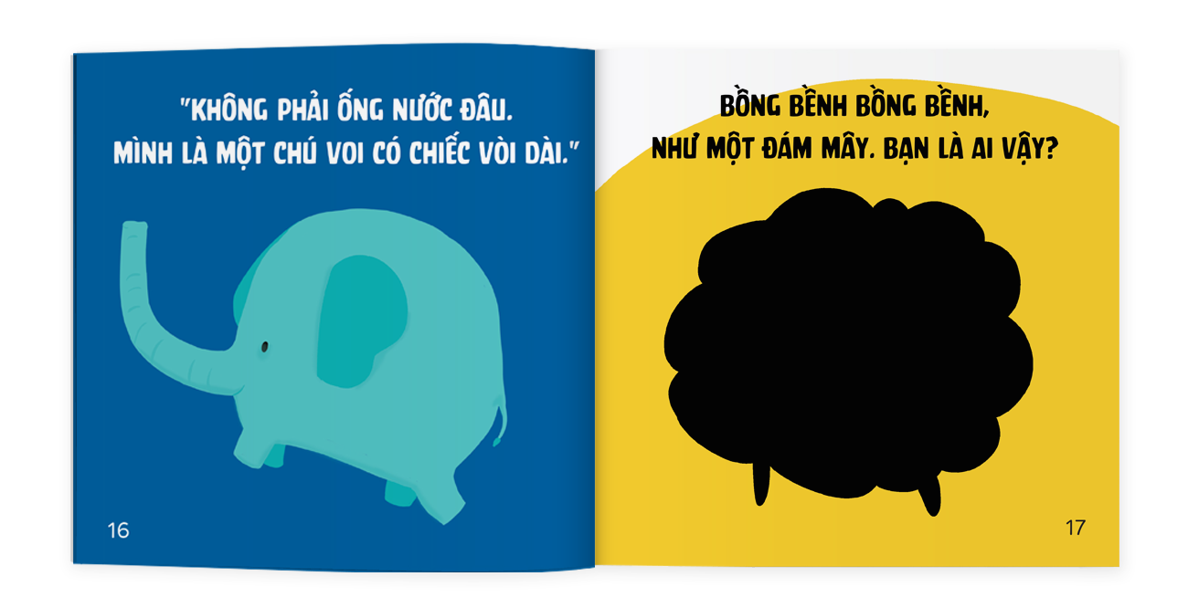 Bộ sách phù hợp cho bé 0-4 tuổi Mỗi bạn động vật đều có 1 nét đặc trưng riêng, "Bạn là ai vậy?" sẽ giúp bé khám phá ra những nét đặc trưng ấy. Món ăn yêu thích của bạn voi là gì?, bé có biết không? Cùng đọc cuốn Ehon "Bạn ăn gì vậy?" để tìm câu trả lời nhé. Bạn động vật nào lông trắng, đuôi ngắn tai dài, có tài chạy nhanh nhỉ? Hãy tìm bạn ấy trong cuốn "Bạn màu gì vậy? nhé. "Bạn ở đâu vậy?" là cuốn Ehon chứa đựng bí mật về nơi ở của các bạn động vật, bé có tò mò bạn cá heo ở đâu không.