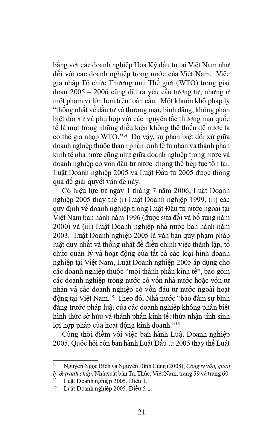 Mua tại Tiktok- Pháp luật về doanh nghiệp – Các vấn đề pháp lý cơ bản (tái bản lần 1 năm 2024) Tác giả: Trương Nhật Quang Nhà xuất bản: Dân Trí Công ty phát hành: Công ty TNHH Sách Á Châu Kích thước: 15.5x 24.5 cm Số trang: 1100 trang Ngày phát hành: 3.2024 Hình thức bìa: Bìa mềm Giá bìa: 900.000 đ Lời giới thiệu: Cuốn sách đầu tiên nghiên cứu một cách có hệ thống các vấn đề pháp luật về doanh nghiệp của Việt Nam từ cả góc độ lý thuyết và thực tiễn, tập trung vào các giao dịch mua bán doanh nghiệp và tài chính-ngân hàng có yếu tố nước ngoài dựa trên kinh nghiệm hành nghề thực tế của luật sư Trương Nhật Quang. Công ty luật YKVN nơi tác giả làm việc là một trong các công ty luật hàng đầu Việt Nam và tham gia tư vấn trong nhiều giao dịch giao dịch mua bán doanh nghiệp và tài chính-ngân hàng có yếu tố nước ngoài quan trọng nhất trên thị trường. Đây là ấn bản sửa đổi lần đầu của cuốn sách được luật sư Trương Nhật Quang xuất bản năm 2016. Được viết trong trong 4 năm qua, cuốn sách cập nhập các thay đổi luật từ năm 2016, đặc biệt là Luật Doanh nghiệp năm 2020, Luật Đầu tư năm 2020, Luật Chứng khoán năm2019, Bộ luật Hình sự năm 2015 (được sửa đổi, bổ sung năm 2017) và nhiều văn bản pháp luật quan trọng khác. Do vậy, nội dung cuốn sách gần như được cập nhật lại mới hoàn toàn để phân tích khung pháp lý mới đang áp dụng tại thời điểm hiện nay. Ngoài việc phân tích các văn bản pháp luật, cuốn sách cũng phân tích các án lệ và nhiều bản án, quyết định và phán quyết của tòa án và trọng tài mà tác giả đã sưu tầm trong thời gian qua. Đặc biệt cuốn sách phân tích rất nhiều bản án phúc thẩm và giám đốc thẩm của các tòa án tại Hà Nội, Đà Nẵng và Thành phố Hồ Chí Minh và Tòa án Nhân dân Tối cao. Do vậy, nhiều vấn đề pháp lý cơ bản trình bày trong cuốn sách được phân tích từ góc độ thực tiễn xét xử tại tòa án. Cuốn sách bao gồm nhiều sơ đồ và bảng tóm tắt để giúp người đọc dễ hiểu hơn các vấn đề pháp lý và cơ cấu giao dịch được trình bày trong cuốn sách. Ngoài ra, để giúp người đọc tiện tra cứu, cuốn sách có (i) bảng tra cứu từ khóa, (ii) bảng tra cứu án lệ, bản án và quyết định và (iii) danh sách các tài liệu trích dẫn. Trải dài trong hơn 1000 trang, cuốn sách phân tích các vấn đề pháp lý cơ bản liên quan đến việc thành lập, tổ chức quản lý và hoạt động của doanh nghiệp. Kết cấu của cuốn sách gồm hai mươi chương và chia làm năm phần, tập trung vào hai hình thức doanh nghiệp thông dụng nhất là công ty trách nhiệm hữu hạn (CTTNHH) và công ty cổ phần (CTCP). • Phần I (từ Chương 1 đến Chương 9) phân tích các vấn đề pháp lý chung và áp dụng cho mọi loại hình doanh nghiệp. • Phần II (từ Chương 10 đến Chương 12) tập trung vào các vấn đề pháp lý liên quan đến tư cách và quyền của thành viên CTNHH và cổ đông CTCP. • Phần III (từ Chương 13 đến Chương 15) trình bày các vấn đề pháp lý về quản trị CTTNHH và CTCP. • Phần IV (Chương 16 và Chương 17) trình bày các vấn đề pháp lý liên quan đến huy động vốn dưới hình thức phát hành chứng khoán và biện pháp bảo đảm. • Phần V (từ Chương 18 đến Chương 20) trình bày các vấn đề pháp lý áp dụng riêng cho công ty đại chúng. Cuốn sách được viết chủ yếu dành cho luật sư, người tham gia công tác giảng dạy, sinh viên luật và người quản lý doanh nghiệp mong muốn tìm hiểu các vấn đề pháp lý về doanh nghiệp. Đặc biệt, cuốn sách giúp các luật sư hành nghề có thể tham khảo khi tư vấn trong các giao dịch doanh nghiệp, đặc biệt là các giao dịch mua bán doanh nghiệp và tài chính-ngân hàng có yếu tố nước ngoài.