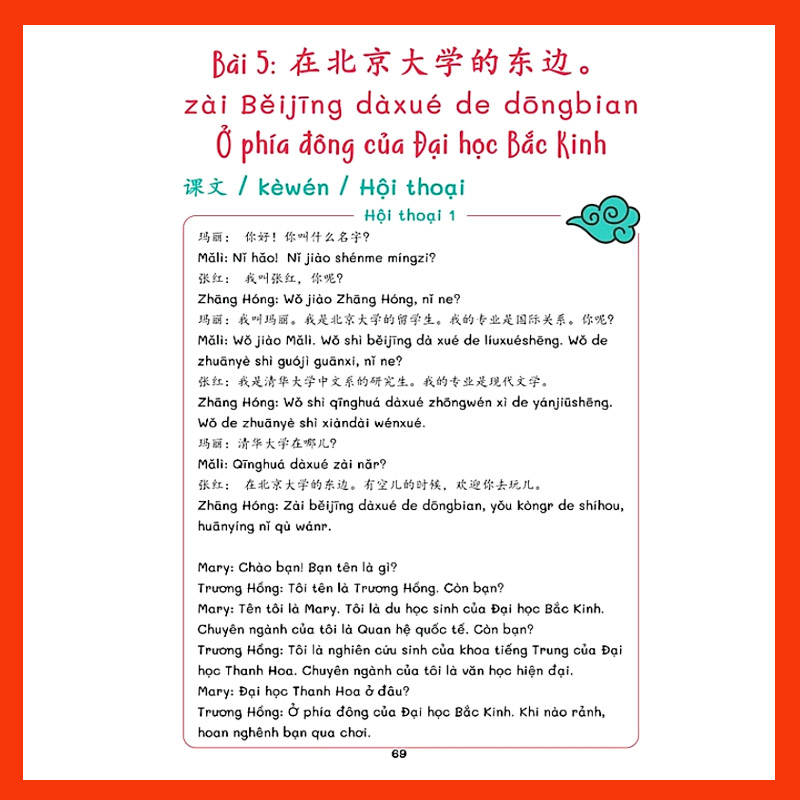 Cuốn sách được thiết kế để giúp người mới bắt đầu nhanh chóng nắm vững những điều cơ bản của tiếng Trung nói và có thể thực hiện giao tiếp đơn giản hàng ngày. Bên trong cuốn sách, nội dung bài học được giải thích bằng tiếng Việt sẽ giúp các bạn hiểu được các khái niệm chung về ngôn ngữ, cách viết các phiên âm, cách phát âm, cách nhớ chữ Hán, từ vựng và ngữ pháp. Mỗi bài học sẽ được kèm theo file hội thoại bài đọc và có phần bài tập cho mỗi bài học.