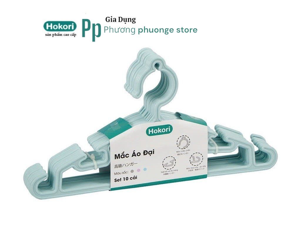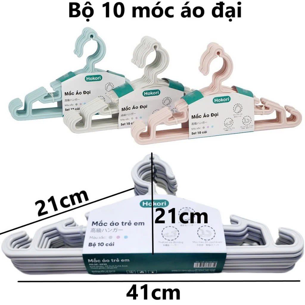 Set 10 móc quần áo HOKORI nhựa VIỆT NHẬT cao cấp - Treo quần áo bé, lớn, váy, áo khoác