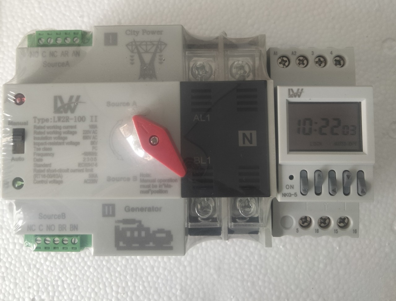 ✨Combo tủ điện Ats 100A LW + Timer NKG5 chuyển đổi 2 nguồn điện tự động luân phiên 15 ngày trong tháng không gây mất điện