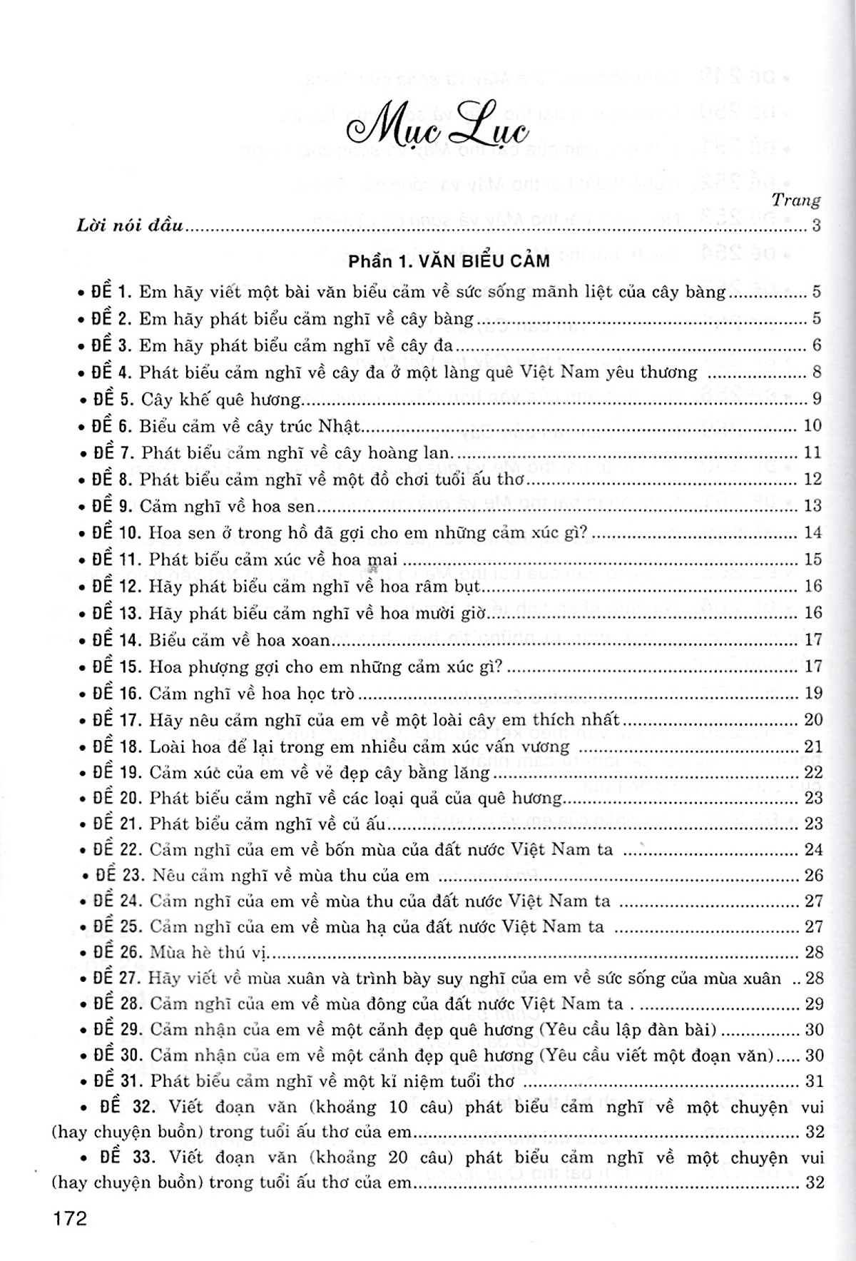 - 270 Đề Và Bài Văn Hay Lớp 7 (Dùng Chung Cho Các Bộ SGK Hiện Hành) Làm văn là một phần quan trọng của môn học Ngữ văn. Làm văn có tính chất quyết định trong việc đánh giá kết quả học tập bộ môn Ngữ văn. Bộ sách 270 Đề Và Bài Văn Hay 7 được biên soạn trên cơ sở Chương trình giáo dục phổ thông mới của Bộ Giáo dục và Đào tạo với những mục đích chính: giúp giáo viên có thêm tài liệu để tham khảo; giúp phụ huynh học sinh có thêm tài liệu để kiểm tra kết quả học tập của các em, giúp các em học sinh có thêm bài tập rèn luyện, nâng cao kiến thức và làm tốt hơn các bài kiểm tra tại lớp, các bài thi học kì, thi học sinh giỏi. Những đoạn văn, những bài văn trong quyển sách này không phải là những khuôn mẫu để các em sao chép mà chỉ là những gợi ý, những suy nghĩ có tính chất tham khảo. Trong quá trình làm văn, các em cần phải có những ý tưởng sáng tạo mới mẻ, độc đáo, bay bổng của riêng mình. Mặc dù tác giả đã nghiên cứu tài liệu, dày công biên soạn nhưng sách khó tránh khỏi những thiếu sót nhất định. Tác giả rất mong nhận được ý kiến đóng góp của quý thầy cô giáo và bạn đọc. Chúc các em thành công!