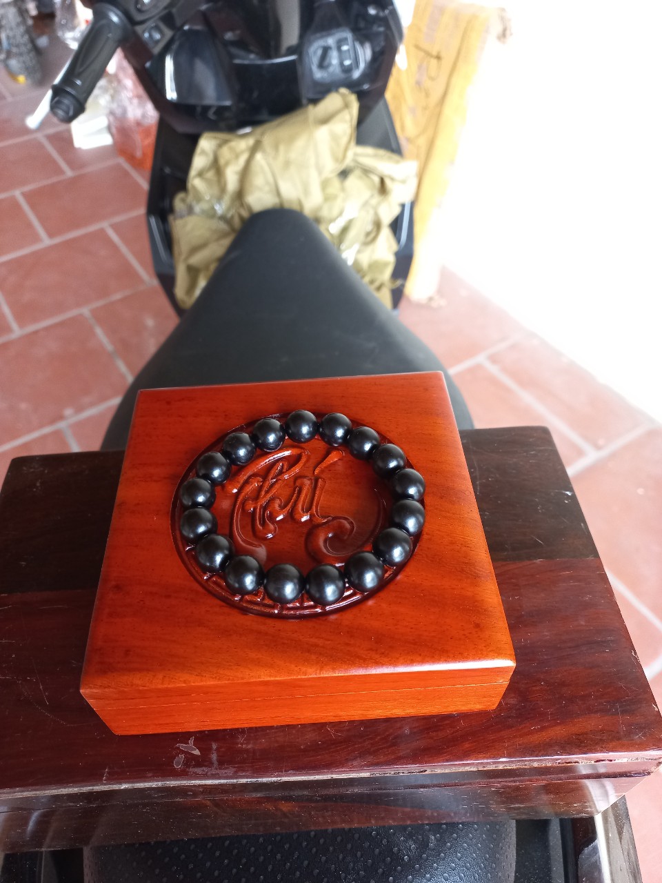 ✨Combo Vòng đeo tay phong thủy bằng gỗ mun sừng kt 12ly +thêm hộp đựng đi kèm bằng gỗ hương khắc chữ phúc kt 12,5×12,5×3,5cm