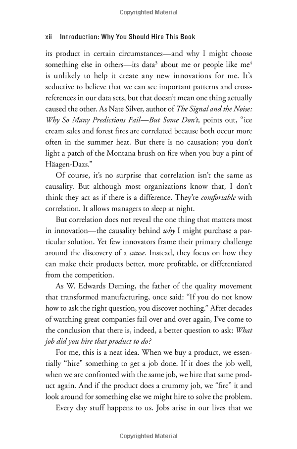 Christensen contends that by understanding what causes customers to "hire" a product or service, any business can improve its innovation track record, creating products that customers not only want to hire, but that they’ll pay premium prices to bring into their lives. Jobs theory offers new hope for growth to companies frustrated by their hit and miss efforts.