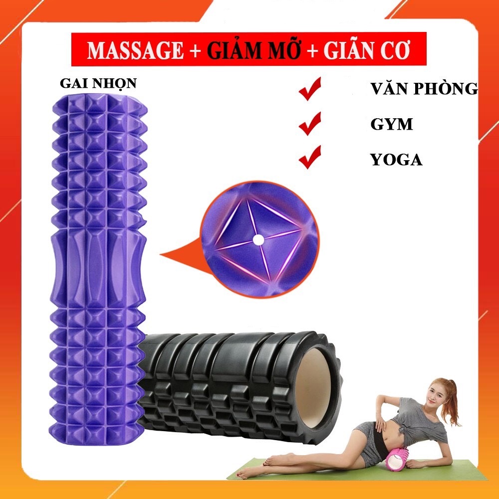 Con lăn Yoga Massage Foarm Roller, ống trụ lăn xốp thể thao giãn cơ có gai roam rollet cao cấp