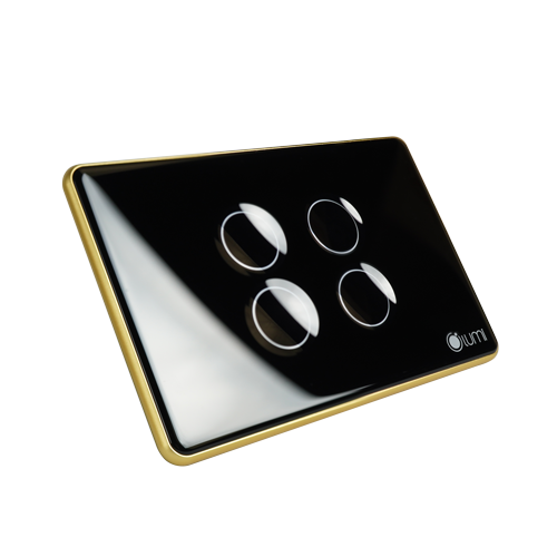 Công tắc cảm ứng kính lõm viền vàng Lumi thiết kế sang trọng, tinh tế - chuẩn nhà hiện đại.