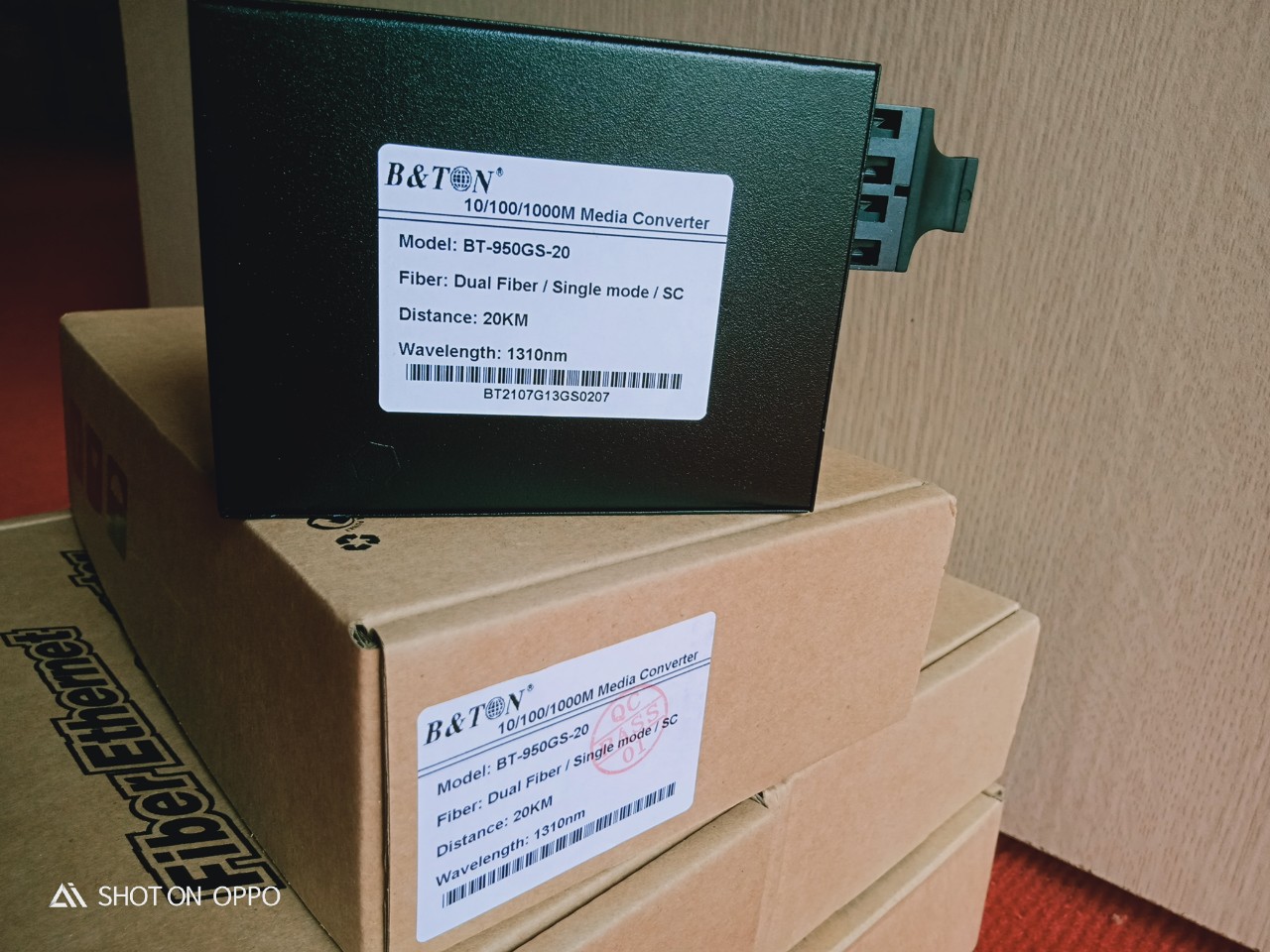 Chuyển đổi quang điện 1 sợi 10/100/1000M, hãng B&TON, Single mode - Model: BT-950GS-25B ( đầu B) - Loại1 sợi cho 10/100/1000M - Chuẩn kết nối SC, Single mdoe - Đường truyển 20km. - Bước