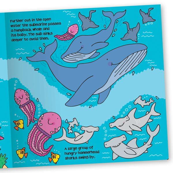 Convertible Submarine Convertible Submarine is a fun storybook for ages 3+ that can also be used as a playmat and a sit-in vehicle for toddlers. Once unfolded, parent and child can read the text, which describes an exciting journey to a shipwreck in a submarine. The bright, busy illustrations are packed with colourful details such as tropical fish and lost treasure. Laid on the floor, the book can also be used as a playmat. The boards can then be refolded into a large, sturdy submarine that a child can sit in and pretend to drive. Convertible Submarine is the perfect playbook for toddlers aged 3+ years to read, play and pretend to drive a submarine into the deep ocean! Fun, underwater adventure story for your child to enjoy Folds into a submarine for your child to play inside Wonderful illustrations by Simon Abbott, packed full of charming details