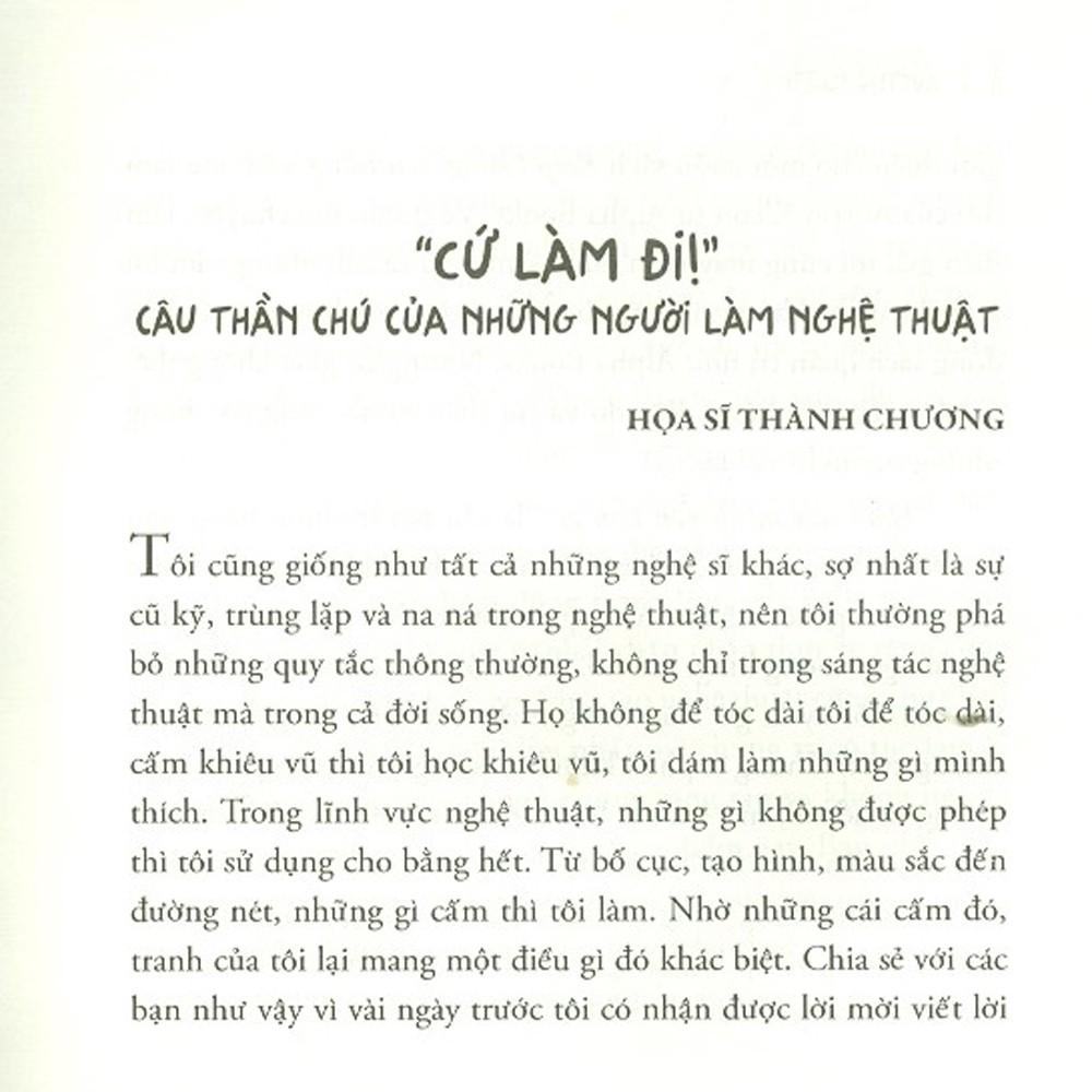 Cho dù bạn đang kiệt sức, ở giai đoạn khởi động phải làm lại từ đầu, hay là đang vô cùng thành công đi chăng nữa, Cứ Làm Đi! sẽ giúp bạn tiếp bước trên con đường sáng tạo nghệ thuật.
