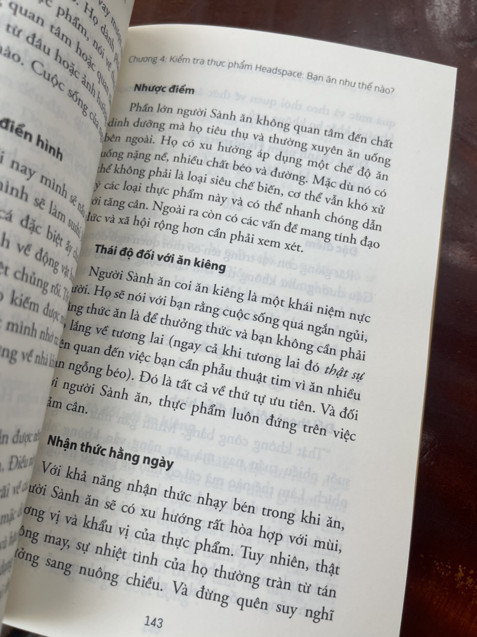 CÙNG HEADSPACE ĂN CHÁNH NIỆM là cuốn sách hướng dẫn cách tìm ra cân nặng lý tưởng và quản lý nó trong chánh niệm. Ngoài ra, cuốn sách còn giúp thoát khỏi cái bẫy ăn kiêng vô tận bằng cách làm theo các bài tập đơn giản nhưng có khả năng thay đổi cuộc sống, phát triển những thói quen mới và cải thiện mối quan hệ giữa cơ thể và thức ăn.