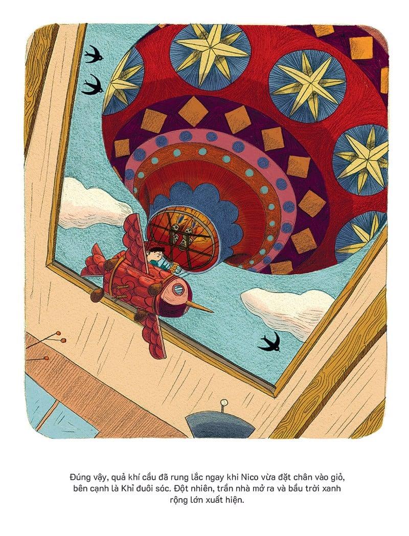 Tối nay, khi Nico bước vào Xưởng Máy, Khỉ đuôi sóc đã yên vị trong chiếc giỏ của Cỗ máy-Khí cầu khổng lồ. Nó sẽ mang họ lên bầu trời và bay vào vũ trụ.