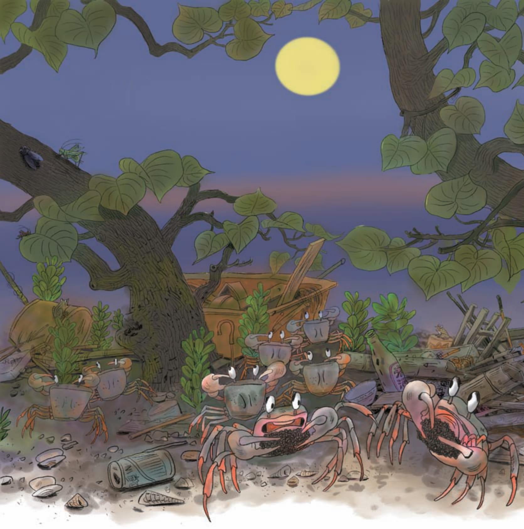 Vào đêm trăng tròn, các cô cua phải bò ra bờ biển để sinh nở.