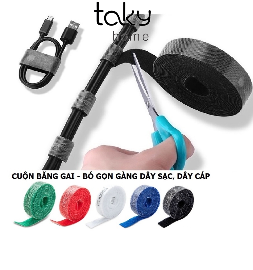 Mua tại Tiktok1 Cuộn Dây Cuốn Dán Dính Đa Năng, Cuộn Băng Bó - Cuộn - Buộc Dây Điện, Cáp, Dây Sạc Gọn Gàng, Tái Sử Dụng, Đơn Giản. Taky Home Hàng Nhập Khẩu Dây Buộc Cáp Sạc Điện Thoại, Macbook, Laptop , Dây Điện Bằng Băng Gai Dính -Dễ dàng sử dụng, có lỗ xỏ giữ dây dính luôn đi kèm với cáp, không lo thất lạc - Độ bền cao, nhỏ và nhẹ, dễ dàng mang theo - Thân thiện với môi trường, có thể tái sử dụng nhiều lần.