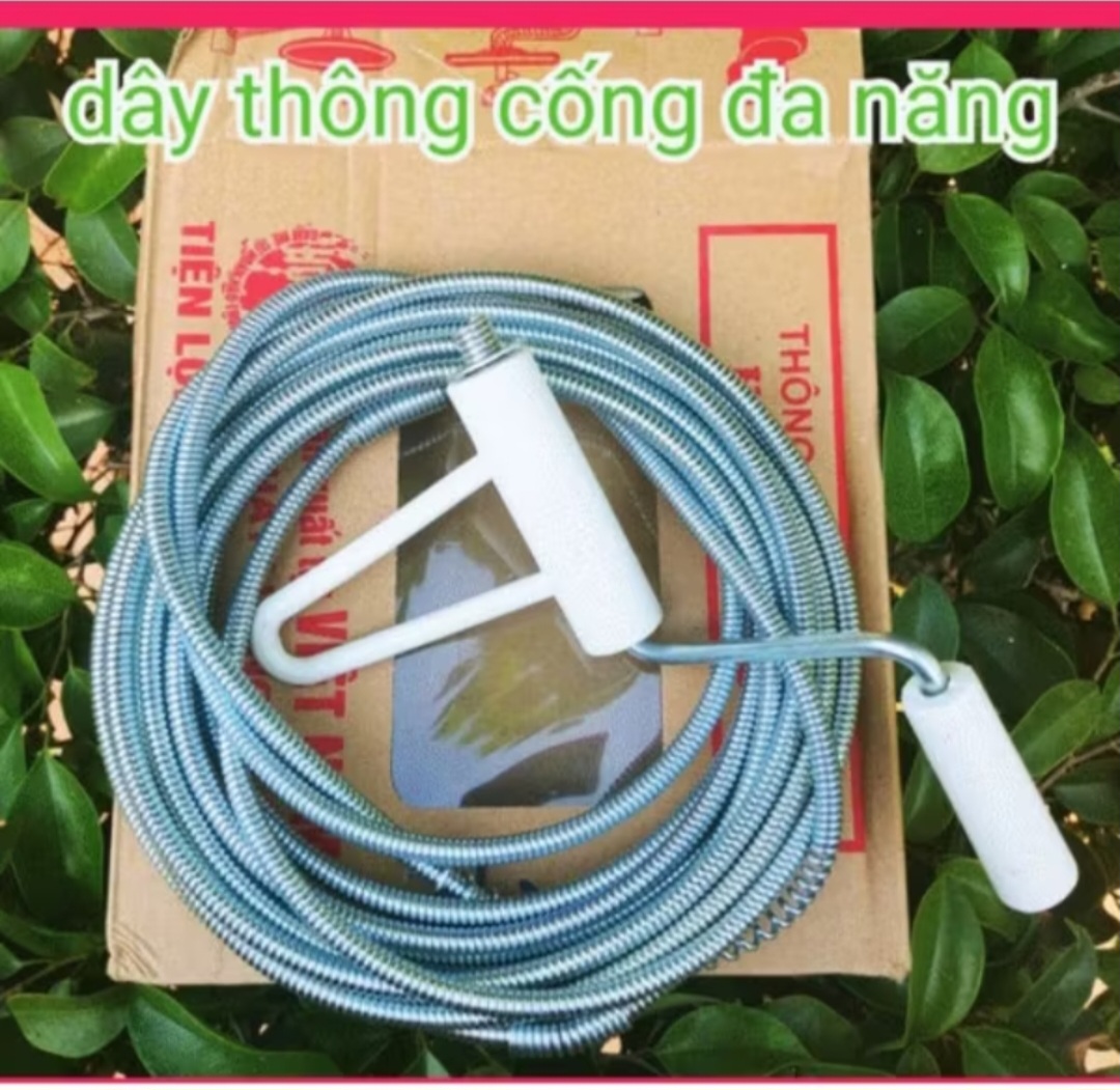 dây thông cống Dây thông cống DÀI 5m: Cống thoát nước, bồn rửa... sử dụng lâu dễ bị tắc nghẽn do cặn bẩn hay tóc... làm nước thoát chậm hoặc không thoát được nước.