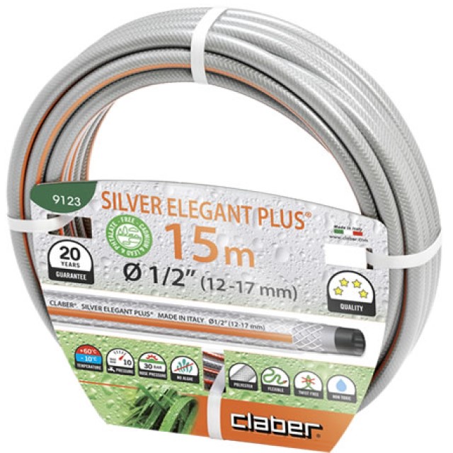 ✨Cuộn ống nước bạc Claber 15m phi 1/2/ Silver Elegant Plus m 15 Ø 1/2” (12-17 mm) Claber 9123