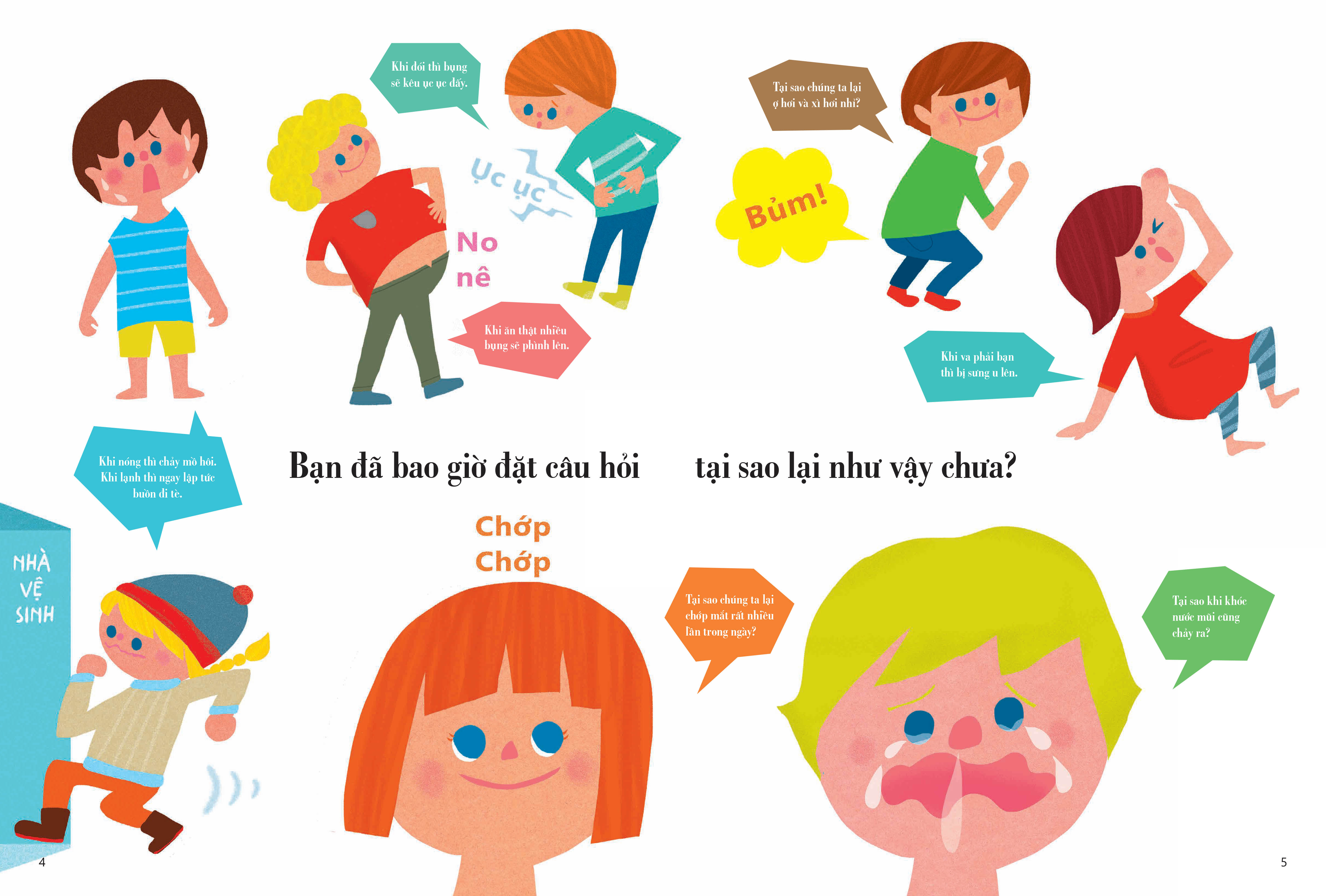 Cuốn sách tranh đầu tiên về cơ thể - Hiểu về cơ thể của bé nhé! Đã bao giờ bé đặt câu hỏi: Khi đói thì bụng sẽ kêu ục ục? Khi nóng thì chảy mồ hôi? Khi lạnh thì ngay lập tức buồn đi tè? Tại sao chúng ta lại ợ hơi và xì hơi nhỉ? Câu trả lời sẽ có trong “Cuốn sách tranh đầu tiên về cơ thể”. Qua cuốn sách này, các bạn nhỏ sẽ biết được “sự kỳ diệu của cơ thể chúng ta”. Cơ thể vừa có khả năng tự hồi phục những bộ phận bị tổn thương, vừa bảo vệ chúng ta khỏi virus và vi khuẩn. Nó cũng có thể đào thải những thứ không cần thiết ra ngoài. Bé hãy cùng bố mẹ đọc cuốn sách này và cùng khám phá thêm những điều chúng ta còn chưa biết về cơ thể mình nhé!