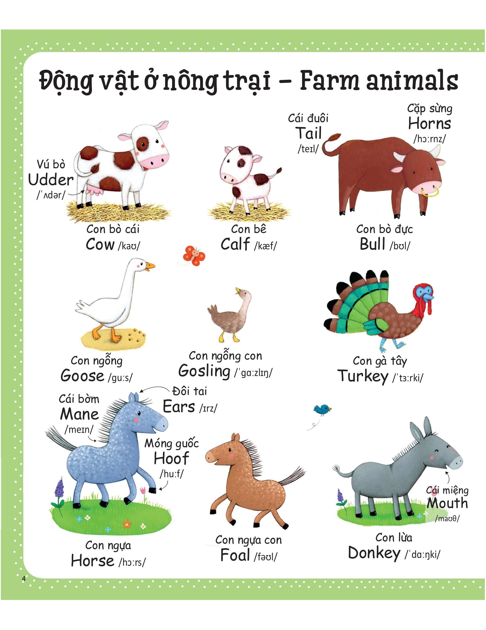 Với bộ sách này, bé sẽ được học hơn 270 từ vựng tiếng Việt và tiếng Anh, với những hình minh họa sống động tuyệt vời. Các chủ đề bao gồm số đếm, động vật,