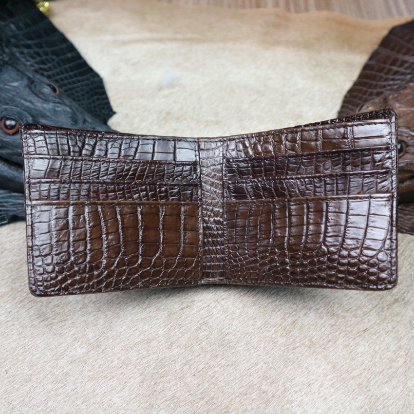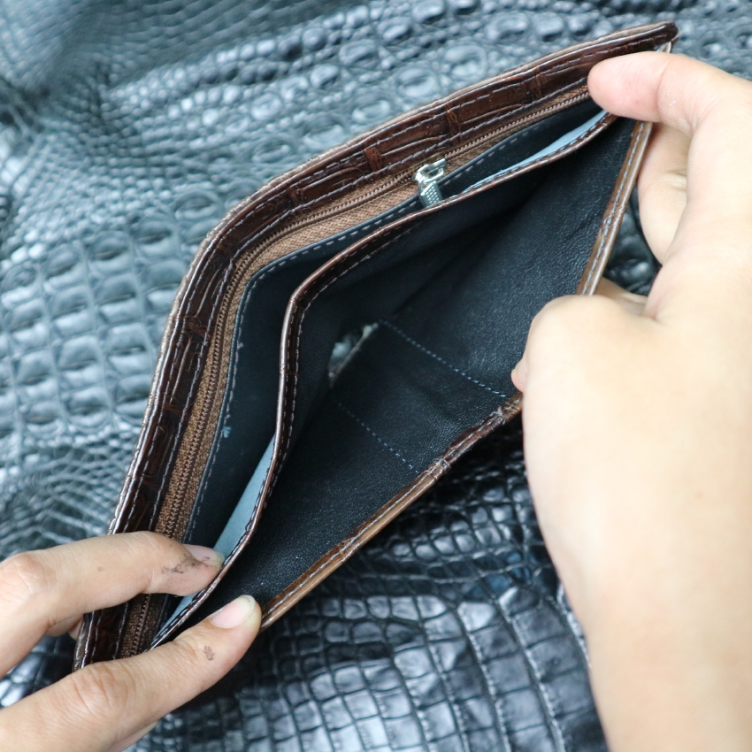 Bóp Da Cá Sấu 2 Mặt Bàn Tay Cá Sấu Màu Nâu - Ví Nam Da Cá Sấu 2 Mặt Có Khoá Kéo Cao Cấp Dáng Ngang Thời Trang