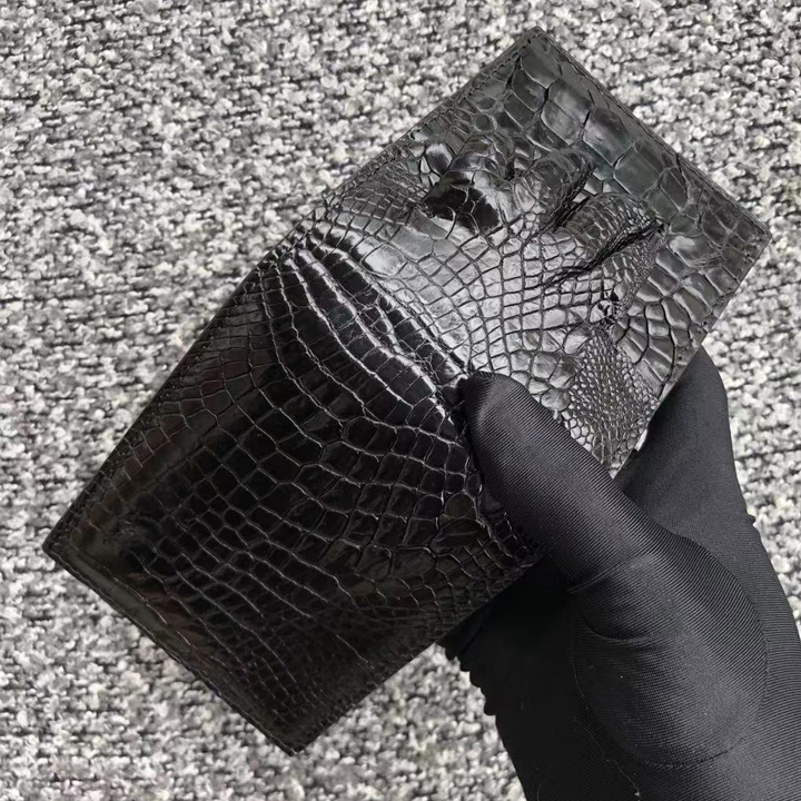 Ví Nam Da Cá Sấu Màu Đen Bàn Tay Cá Sấu - Ví Nam Da Cá Sấu Có Khoá Kéo Cao Cấp Dáng Ngang Thời Trang